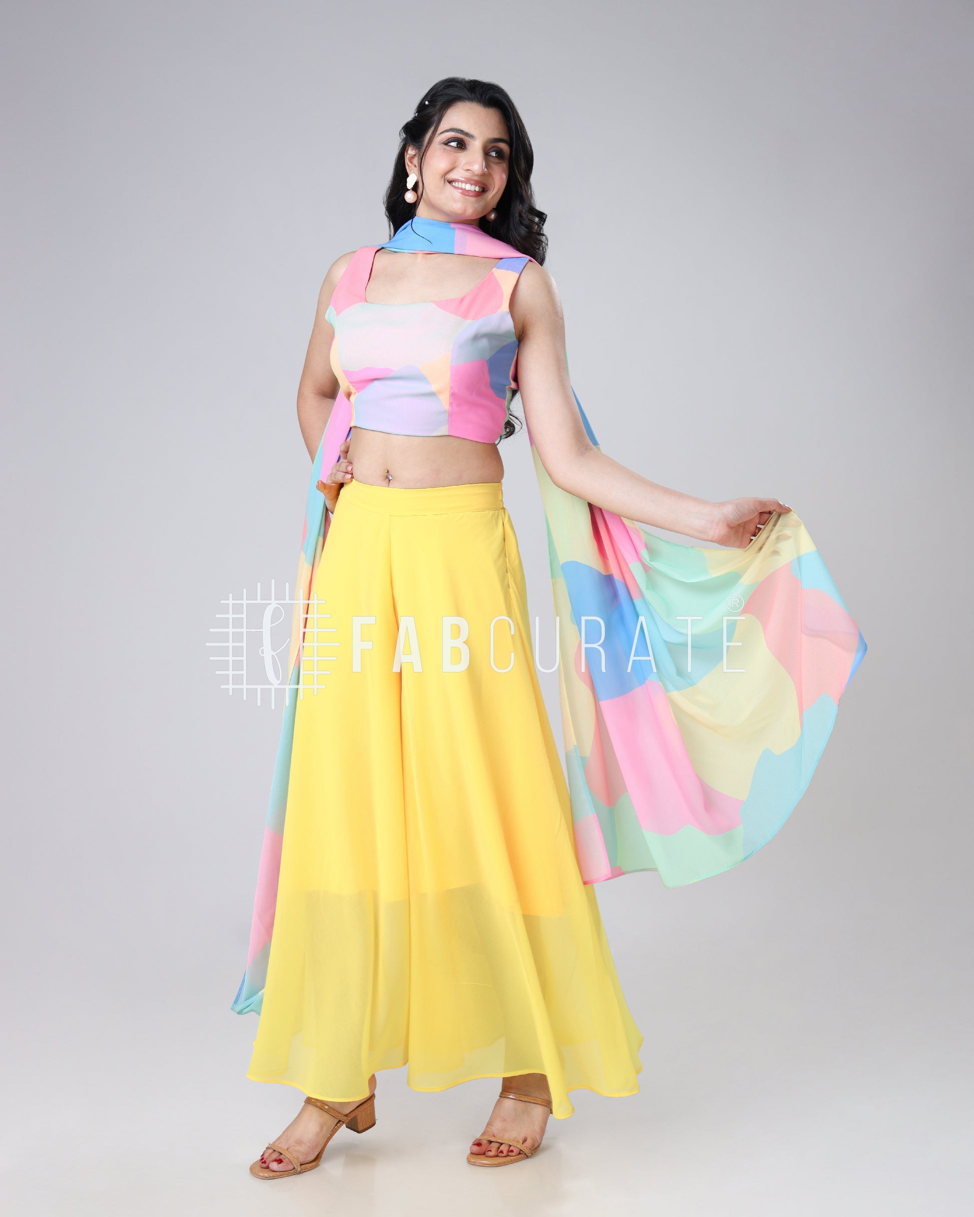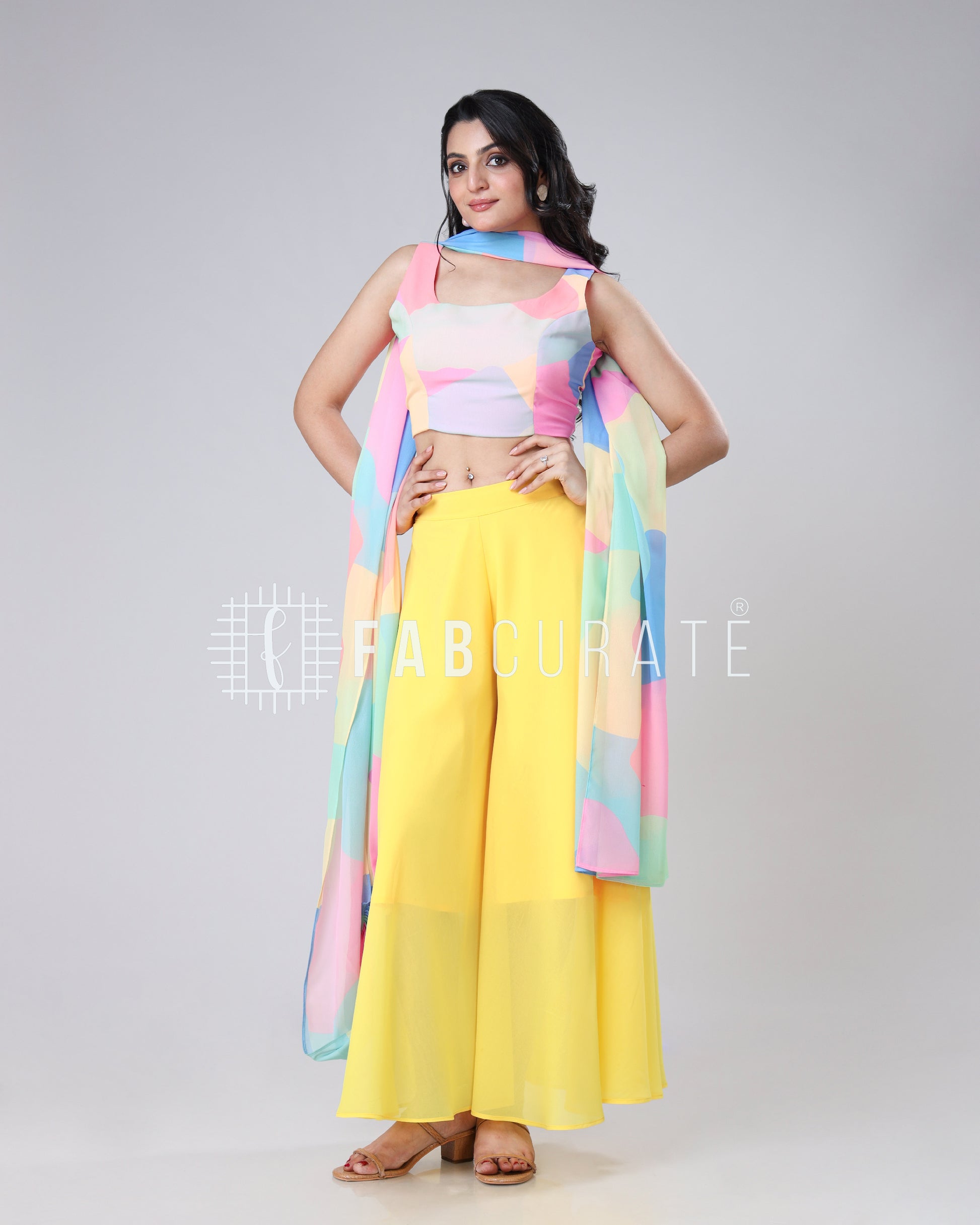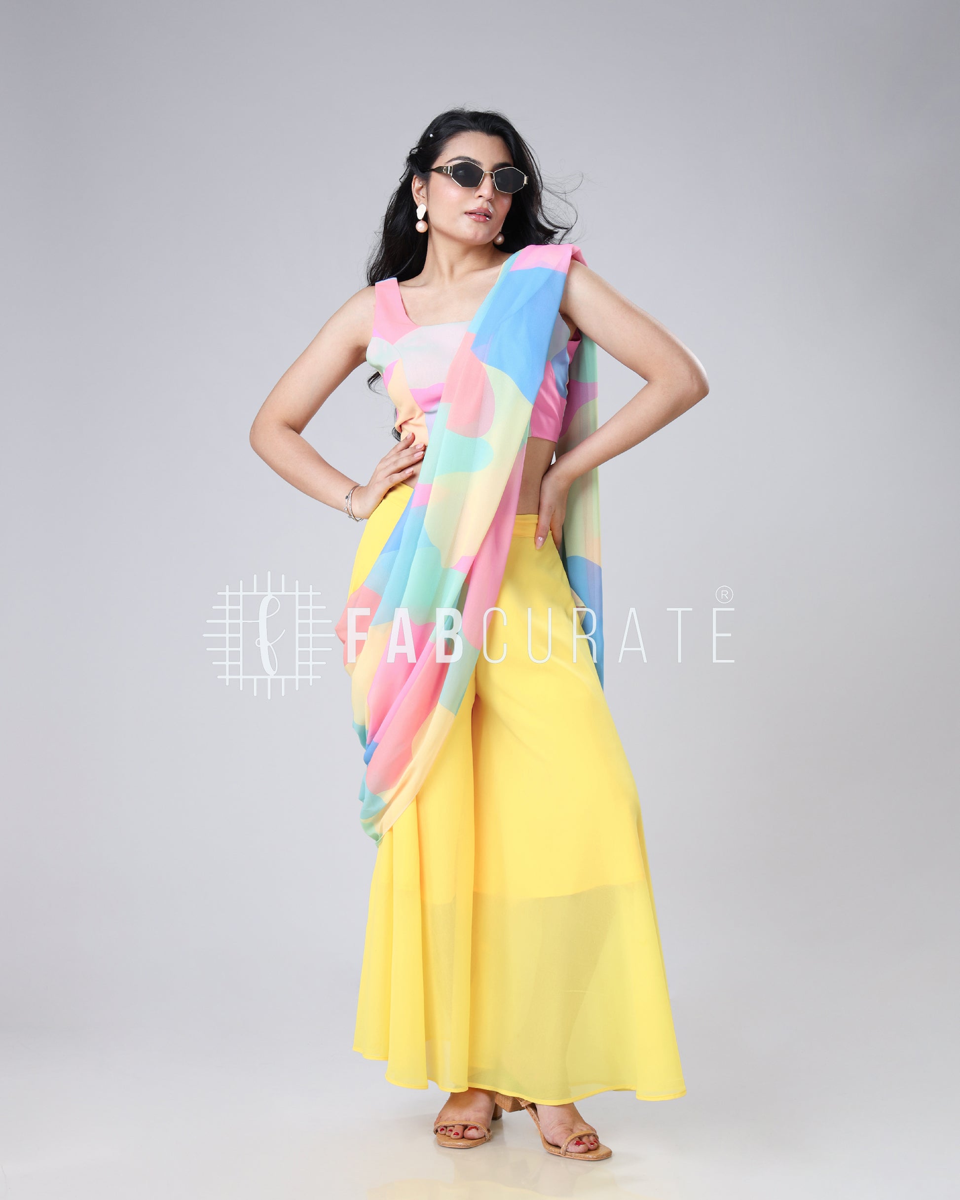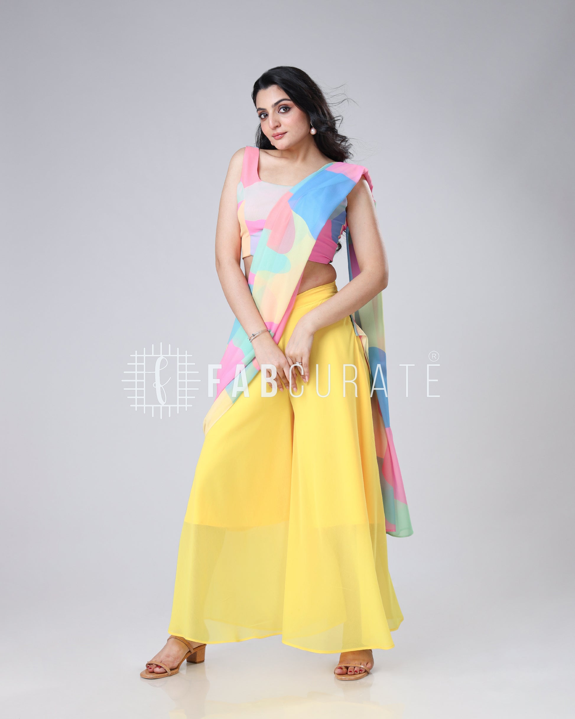 Introducing our Trendy Twisari Palazzo Saree with Detachable Pallu, a perfect fusion of tradition and modern flair. Designed with flowy plazo bottoms for all-day comfort, this outfit redefines elegance with a stylish twist. The detachable pallu lets you experiment with multiple looks – wear it as a chic saree or a contemporary plazo set. A must-have statement piece for your 2025 OOTD, effortlessly blending versatility, grace, and trend.