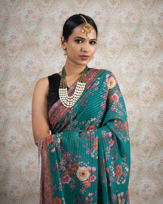 Bottle Green And Maroon Floral Pattren Sequins Georgette Saree With Tubular Beads Pearl Work Lace Border Bottle Green And Maroon Floral Pattren Sequins Georgette Saree With Tubular Beads Pearl Work Lace Border