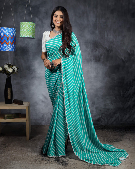 Turquoise Leheriya Printed Pearl Delight Georgette Saree Turquoise Leheriya Printed Pearl Delight Georgette Saree