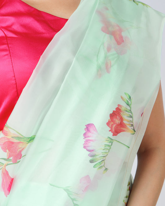 Bloosom Floral Lightweight Organza Flowing And Flirty Saree Bloosom Floral Lightweight Organza Flowing And Flirty Saree