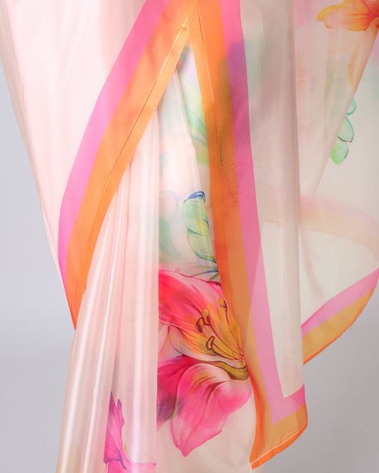 Floral Symphony Lightweight Organza Contrast Border Saree Floral Symphony Lightweight Organza Contrast Border Saree