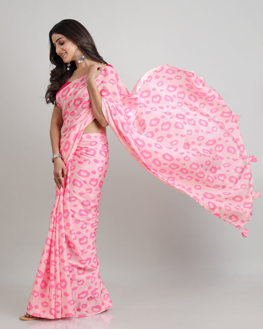 The 'Pink Perfection': Chiffon Satin Saree