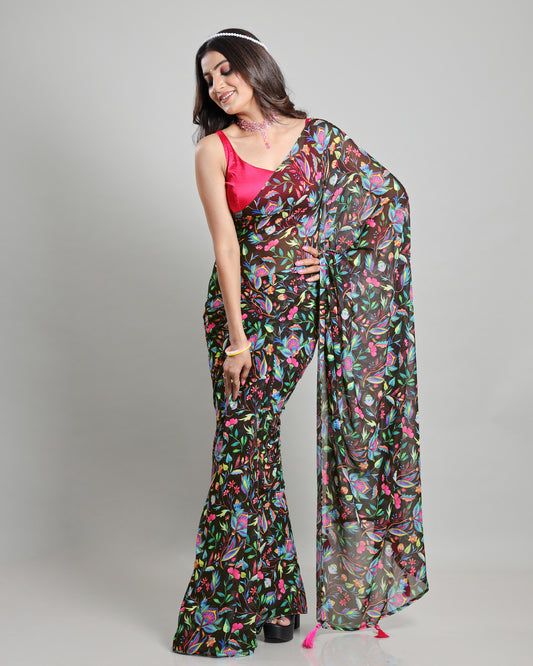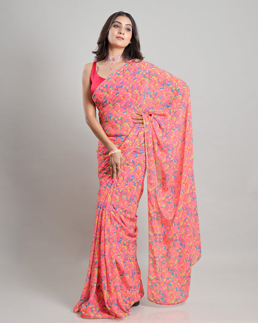 Floral Fiesta: A Playful Floral Neon Georgette Saree Floral Fiesta: A Playful Floral Neon Georgette Saree