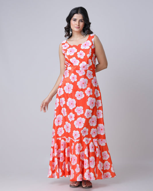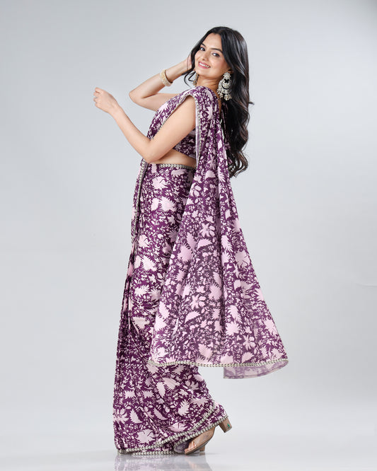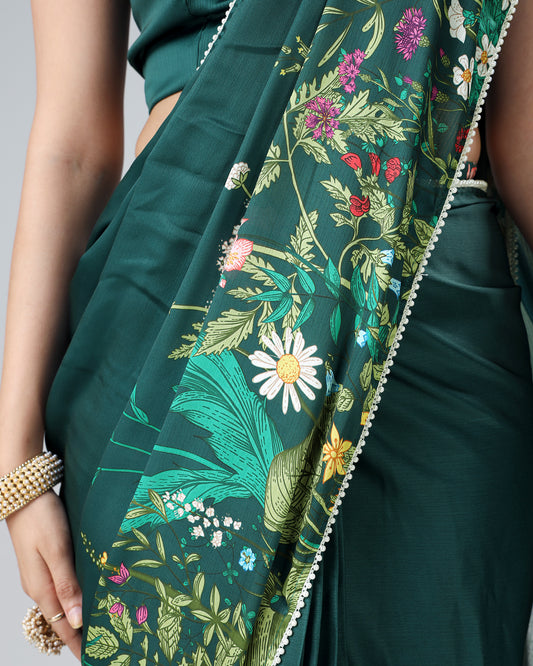 The Royal Touch: Floral Chiffon Satin Saree