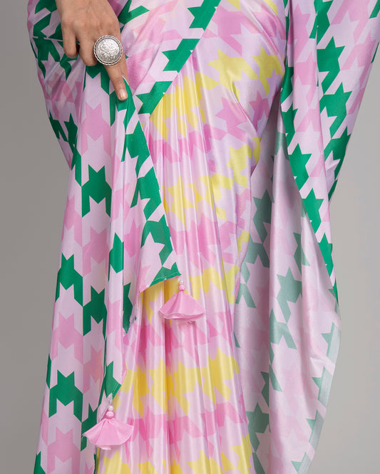 -15% offTrendy Polka Dots Color Block Bollywood Designer Silk Saree Trendy Polka Dots Color Block Bollywood Designer Silk Saree