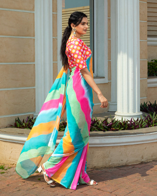 -27% offMulti-Color Stripes Pattern Digital Print Georgette Saree Multi-Color Stripes Pattern Digital Print Georgette Saree