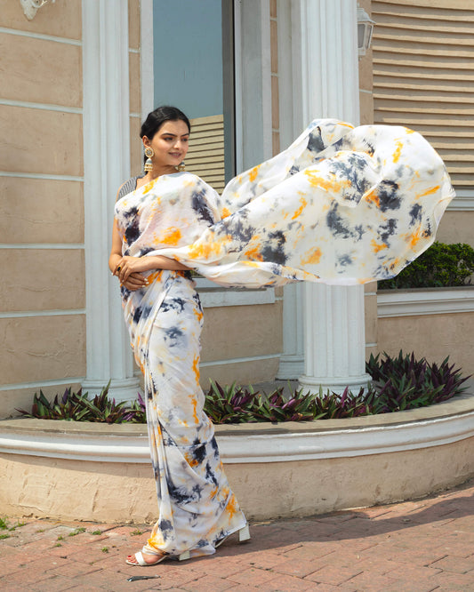 -27% offOff White And Grey Tye And Dye Pattern Digital Print Georgette Saree Off White And Grey Tye And Dye Pattern Digital Print Georgette Saree