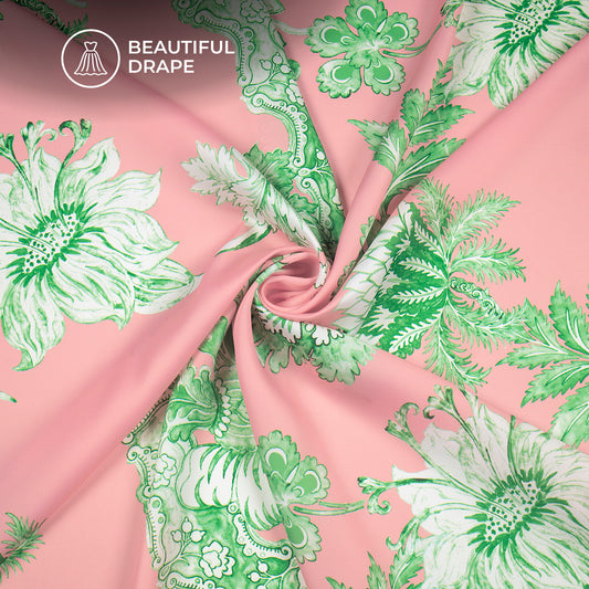 Light Pink Floral Digital Print Imported Satin Fabric Light Pink Floral Digital Print Imported Satin Fabric