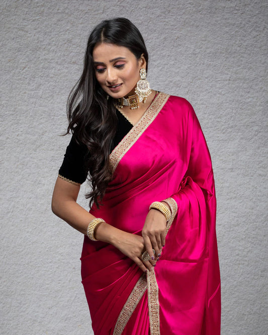 -30% offCerise Pink Plain Japan Satin Saree With Zari Lace Border Cerise Pink Plain Japan Satin Saree With Zari Lace Border