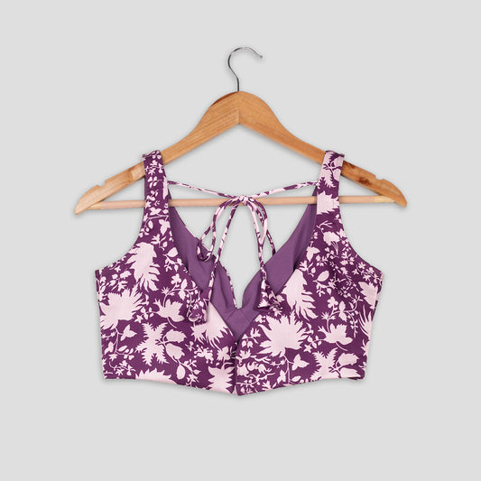 Romantic Edit : Purple Floral Sweet Heart Neck Blo Romantic Edit : Purple Floral Sweet Heart Neck Blo