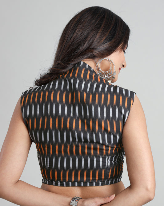 -20% offCrafted For Confidence: Sleeveless Ikkat Print Blouse Crafted For Confidence: Sleeveless Ikkat Print Blouse
