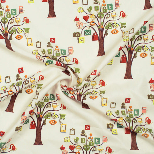 Ivory Cream Social Media Pattern Digital Print Ultra Premium Butter Crepe Fabric Ivory Cream Social Media Pattern Digital Print Ultra Premium Butter Crepe Fabric