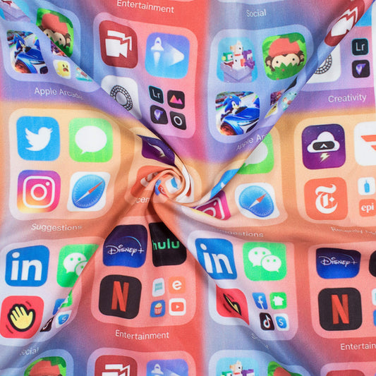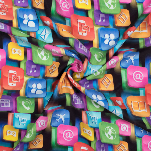 Multi-Color Social Media Pattern Digital Print Ultra Premium Butter Crepe Fabric Multi-Color Social Media Pattern Digital Print Ultra Premium Butter Crepe Fabric