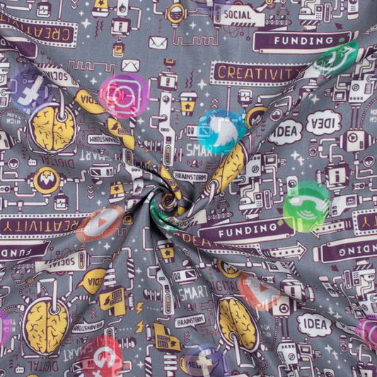 Shark Grey Social Media Pattern Digital Print Ultra Premium Butter Crepe Fabric Shark Grey Social Media Pattern Digital Print Ultra Premium Butter Crepe Fabric