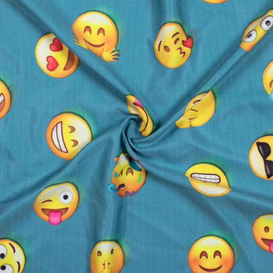 Bondi Blue Social Media Pattern Digital Print Ultra Premium Butter Crepe Fabric Bondi Blue Social Media Pattern Digital Print Ultra Premium Butter Crepe Fabric