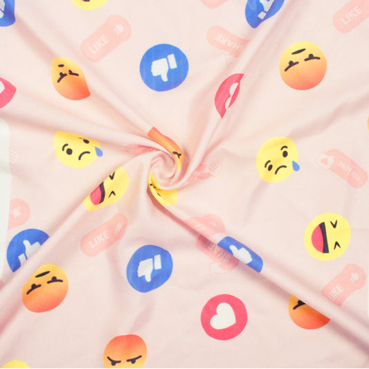 Salmon Peach Social Media Pattern Digital Print Ultra Premium Butter Crepe Fabric Salmon Peach Social Media Pattern Digital Print Ultra Premium Butter Crepe Fabric