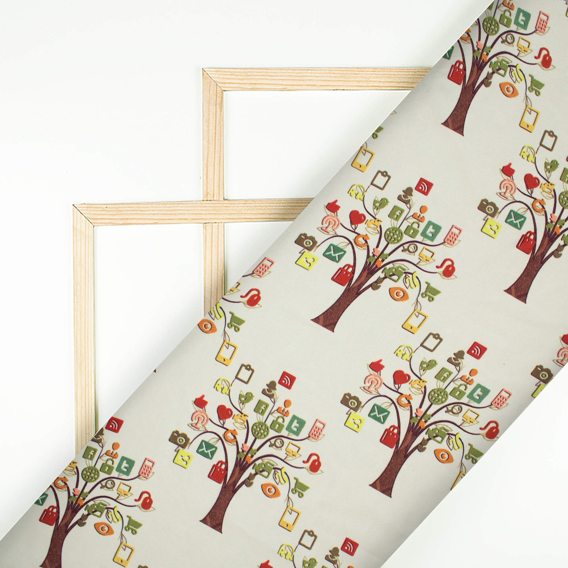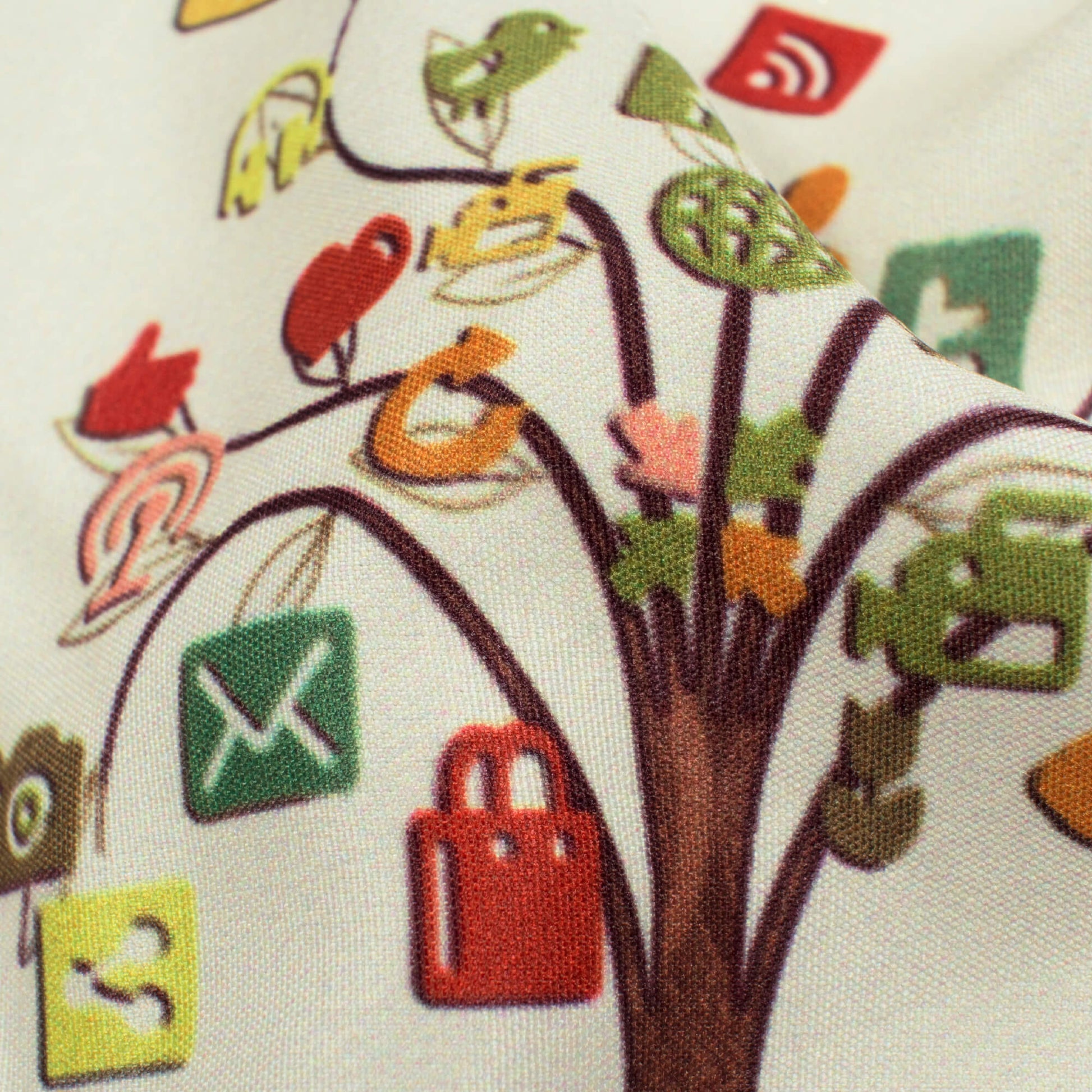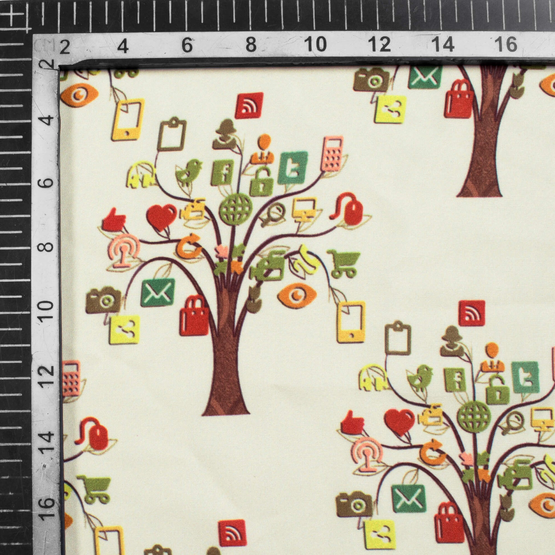 Ivory Cream Social Media Pattern Digital Print Ultra Premium Butter Crepe Fabric