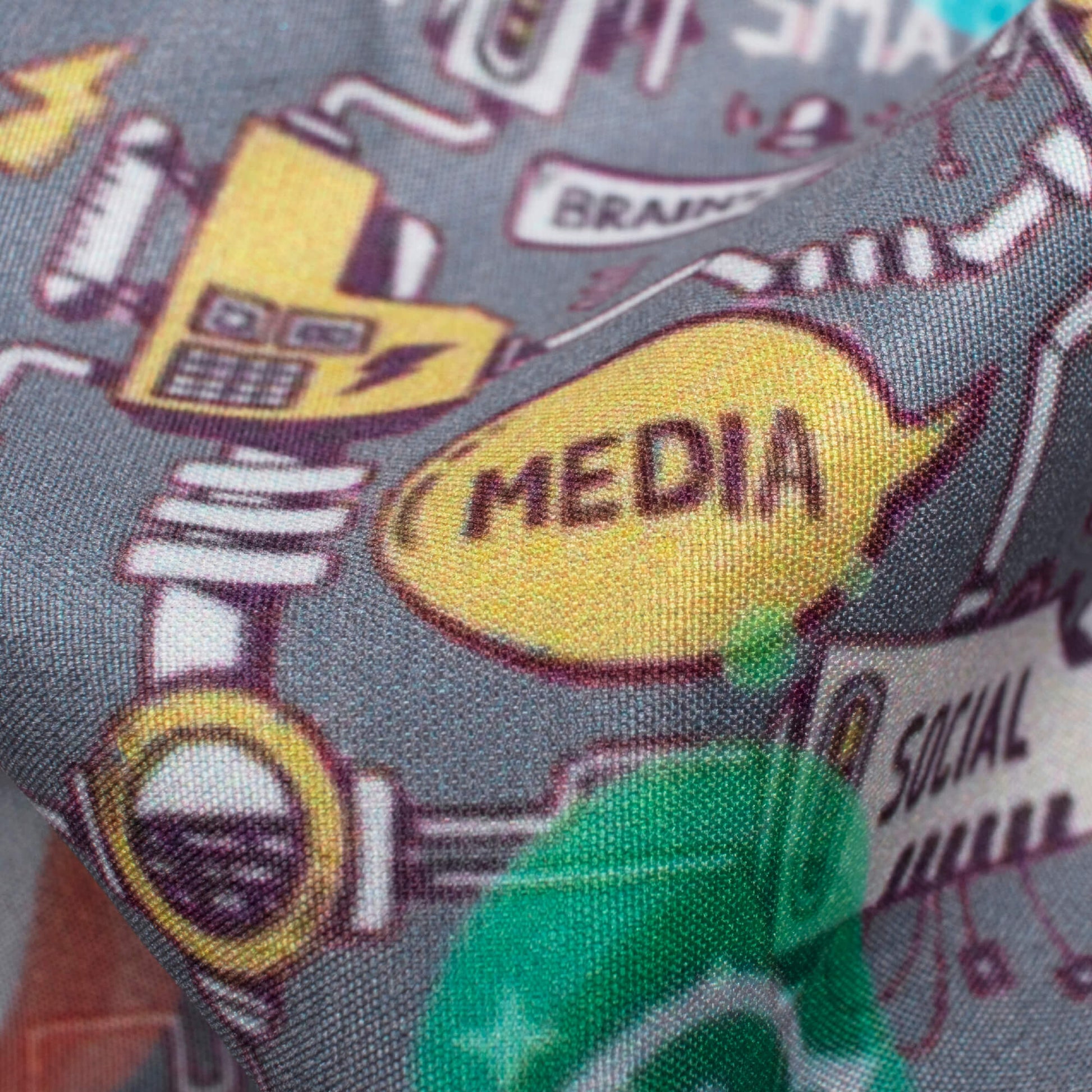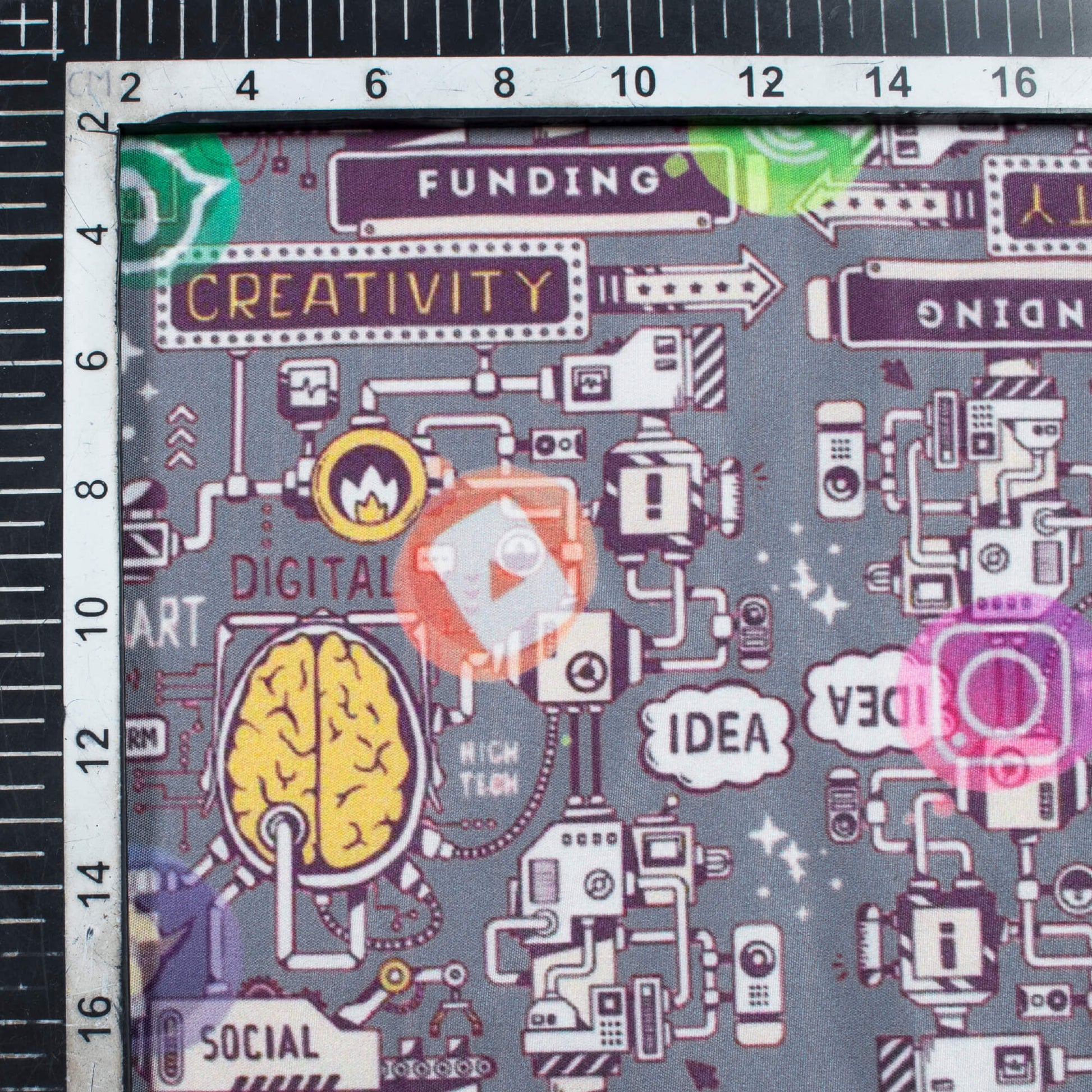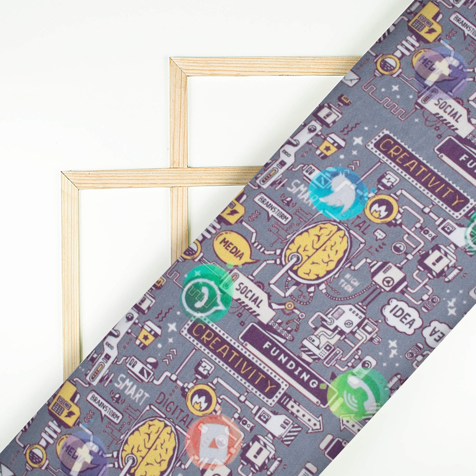 Shark Grey Social Media Pattern Digital Print Ultra Premium Butter Crepe Fabric