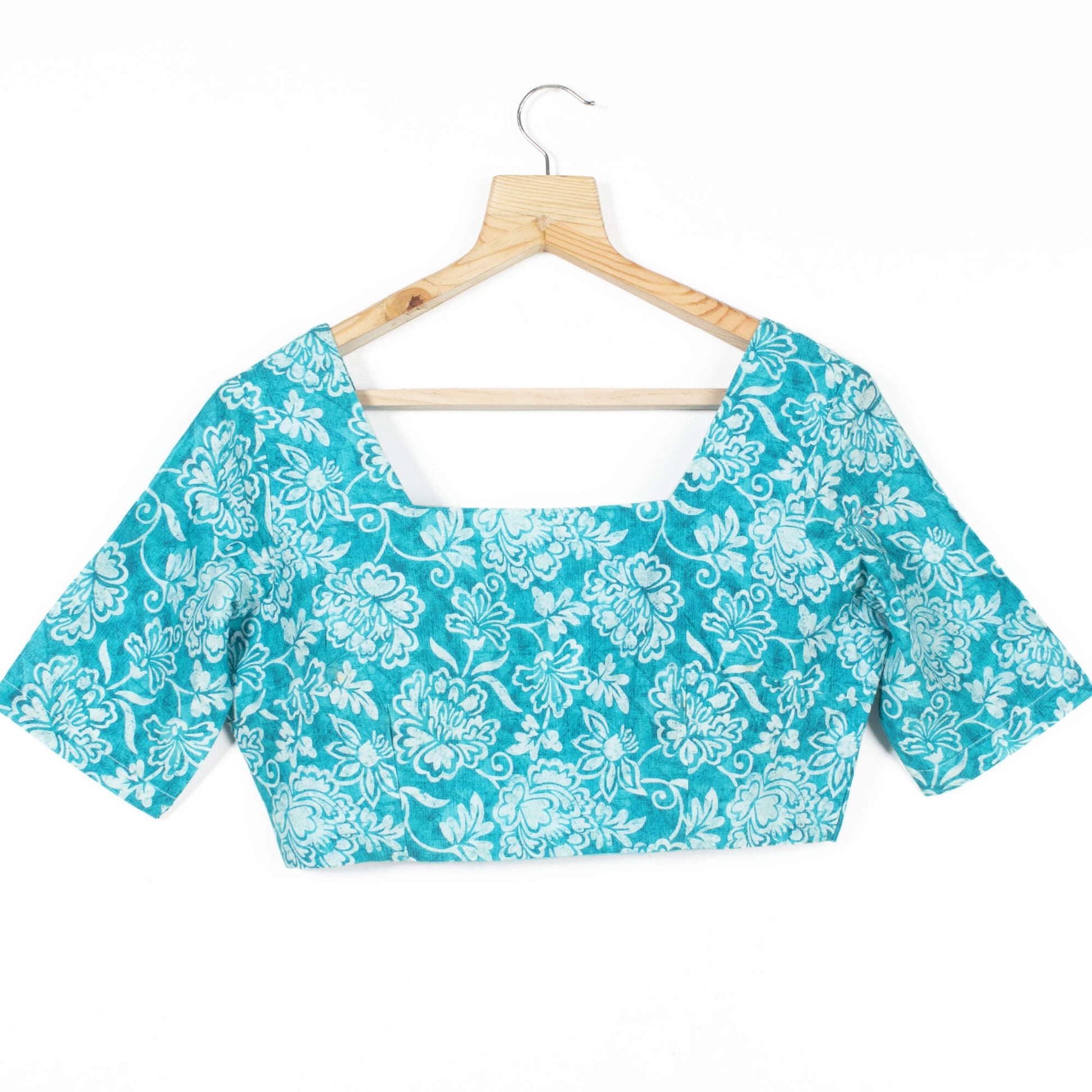 Printed Cotton Cambric blouse with amazing designs appears ravishing. It features half sleeves, a round neckline, and a back hook closure. The fabric is soft and allows movement easily. Style it up with your saree, to mark an impression on occasions or events.