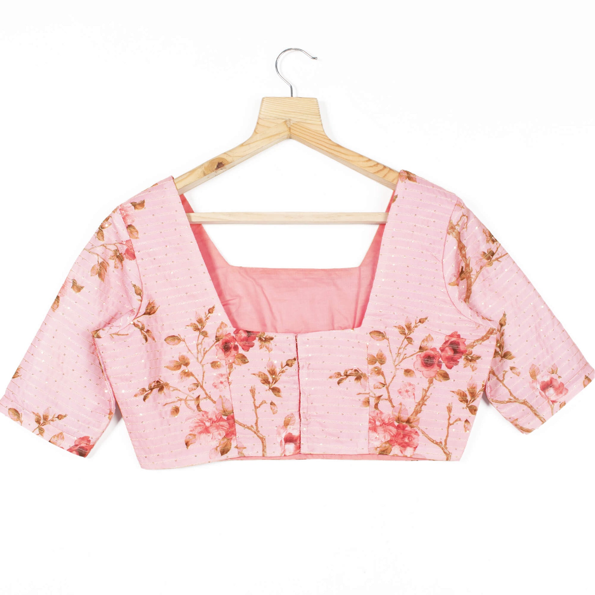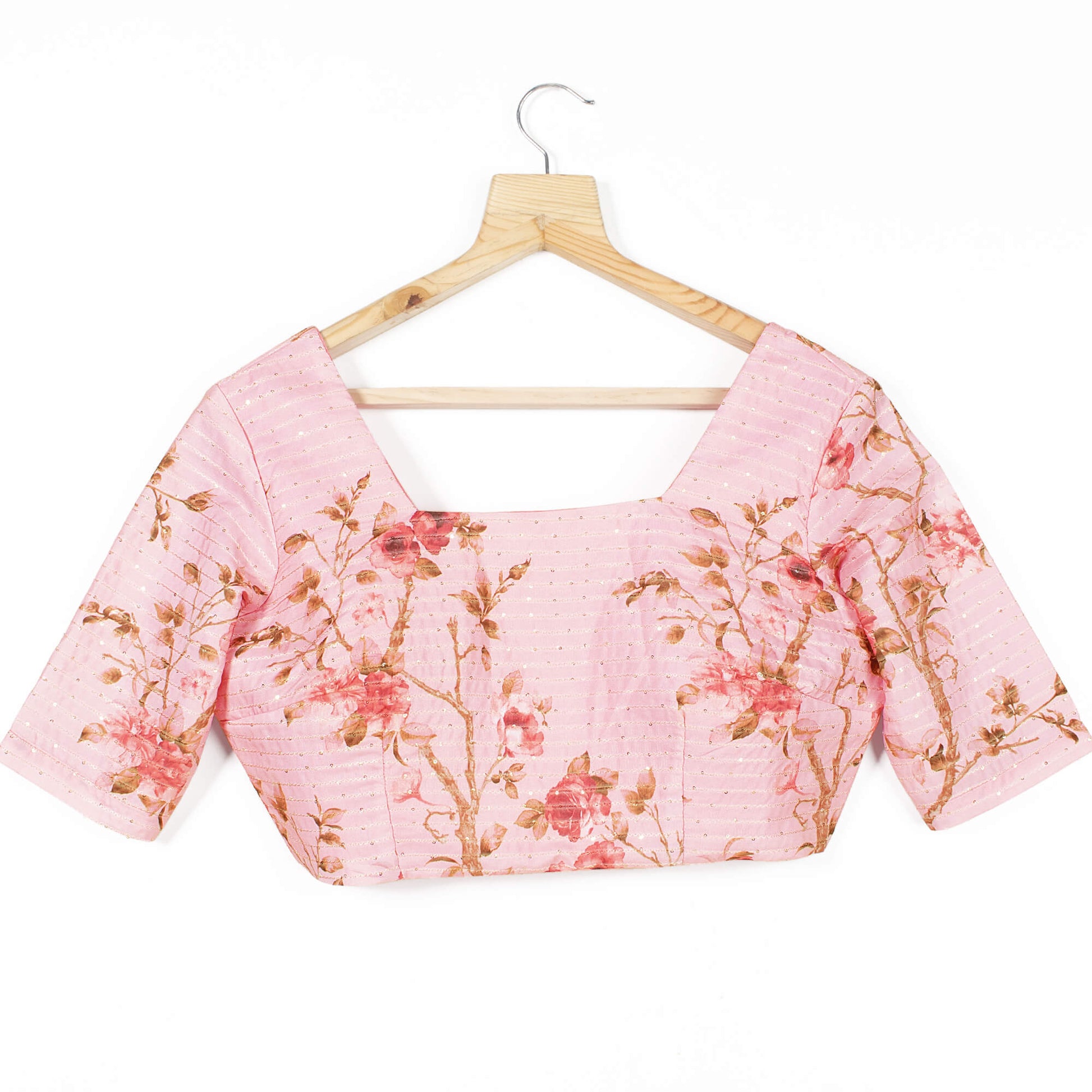 Butter Crepe Blouse has half sleeves and has a Square-ncekline with a back hook closure.The floral pattern formed on the blouse looks good and alluring.This fabric is breathable, and has good drapability.This blouse is a perfect choice for you to get yourself a sumptuous look.