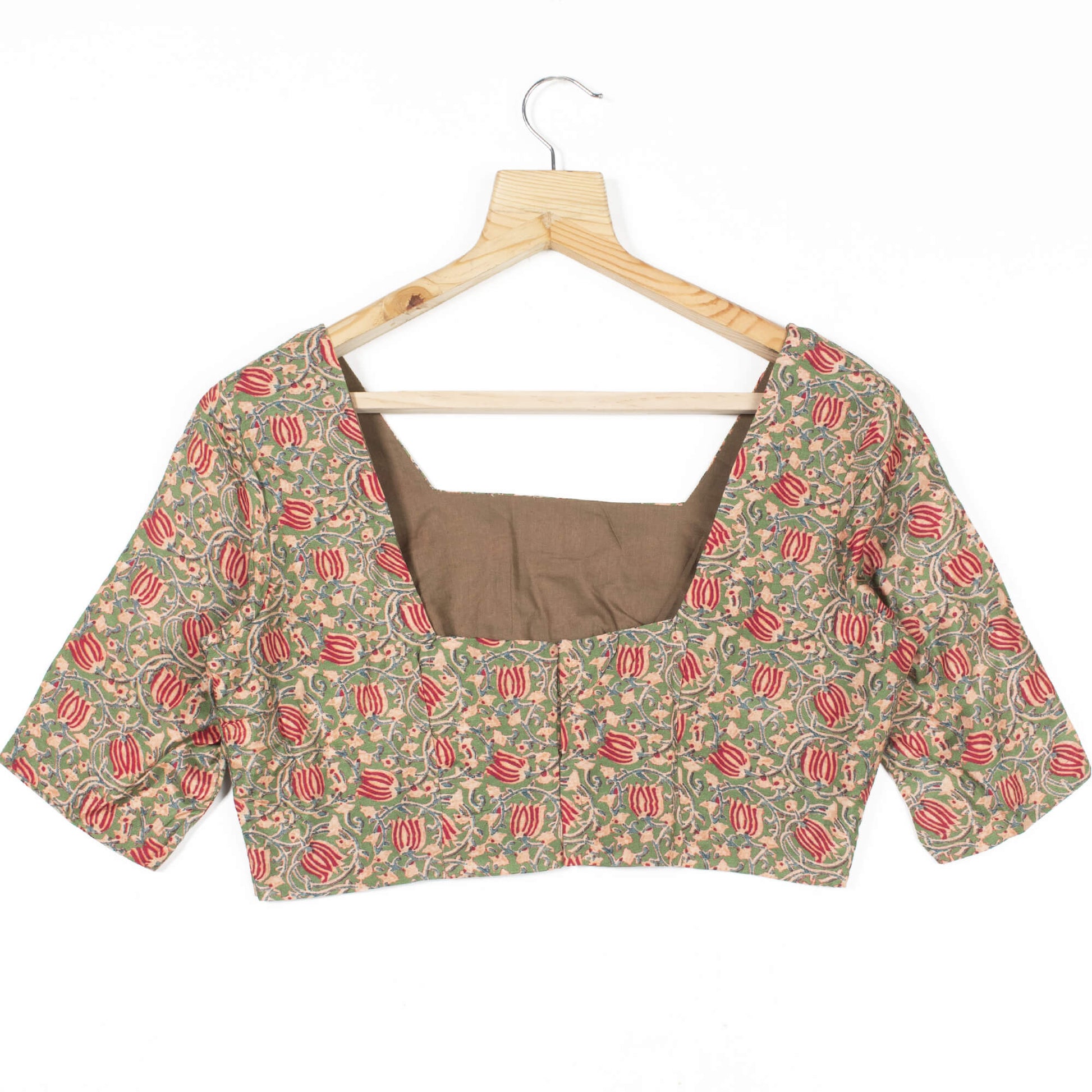 Viscose Muslin blouse is short sleeve and has a sqaure neckline with a back hook closure.The patternn formed on the blouse appears fabulous.This fabric is soft, breathable and maintains shape.Match this blouse with a saree to give yourself a fashion treat.