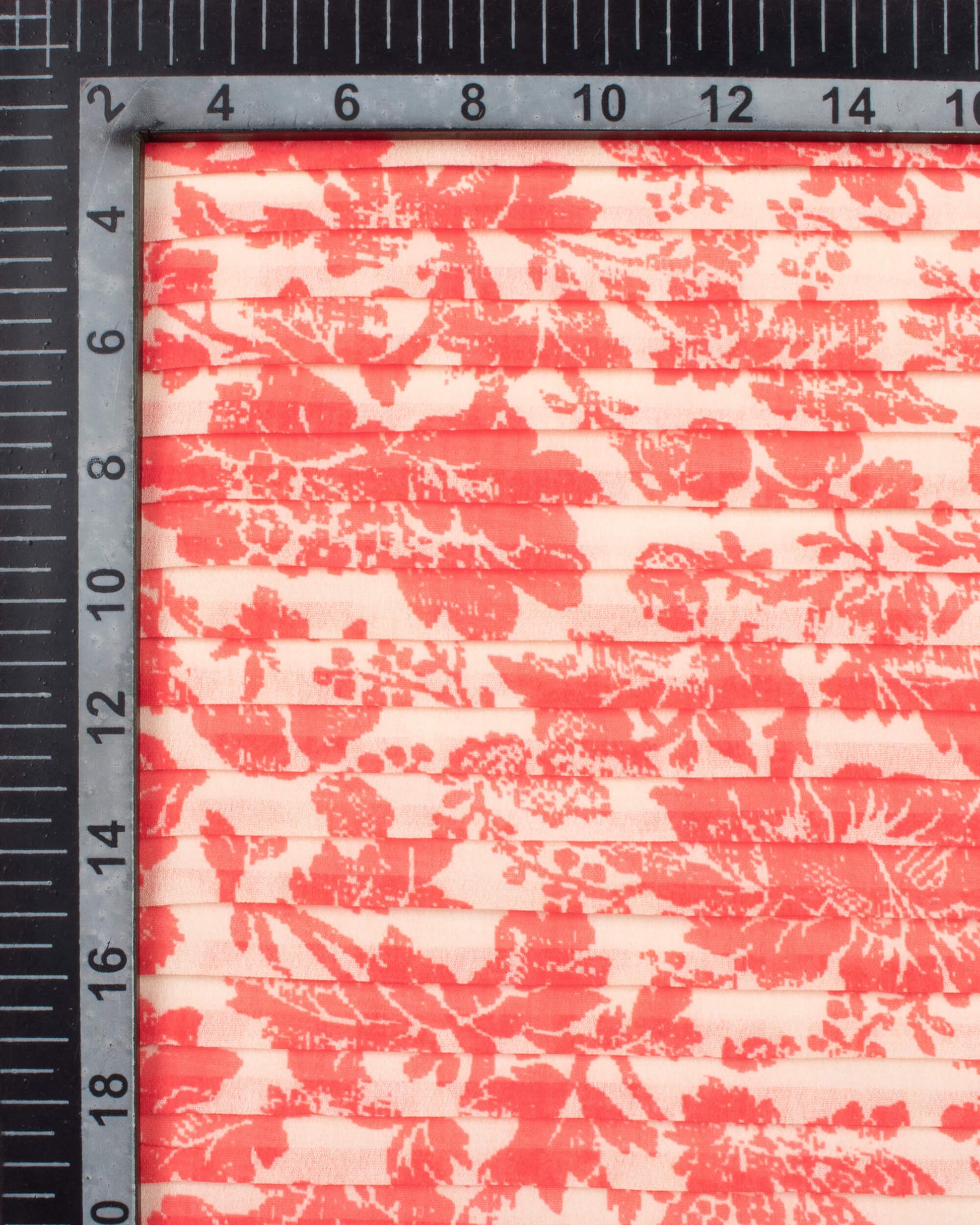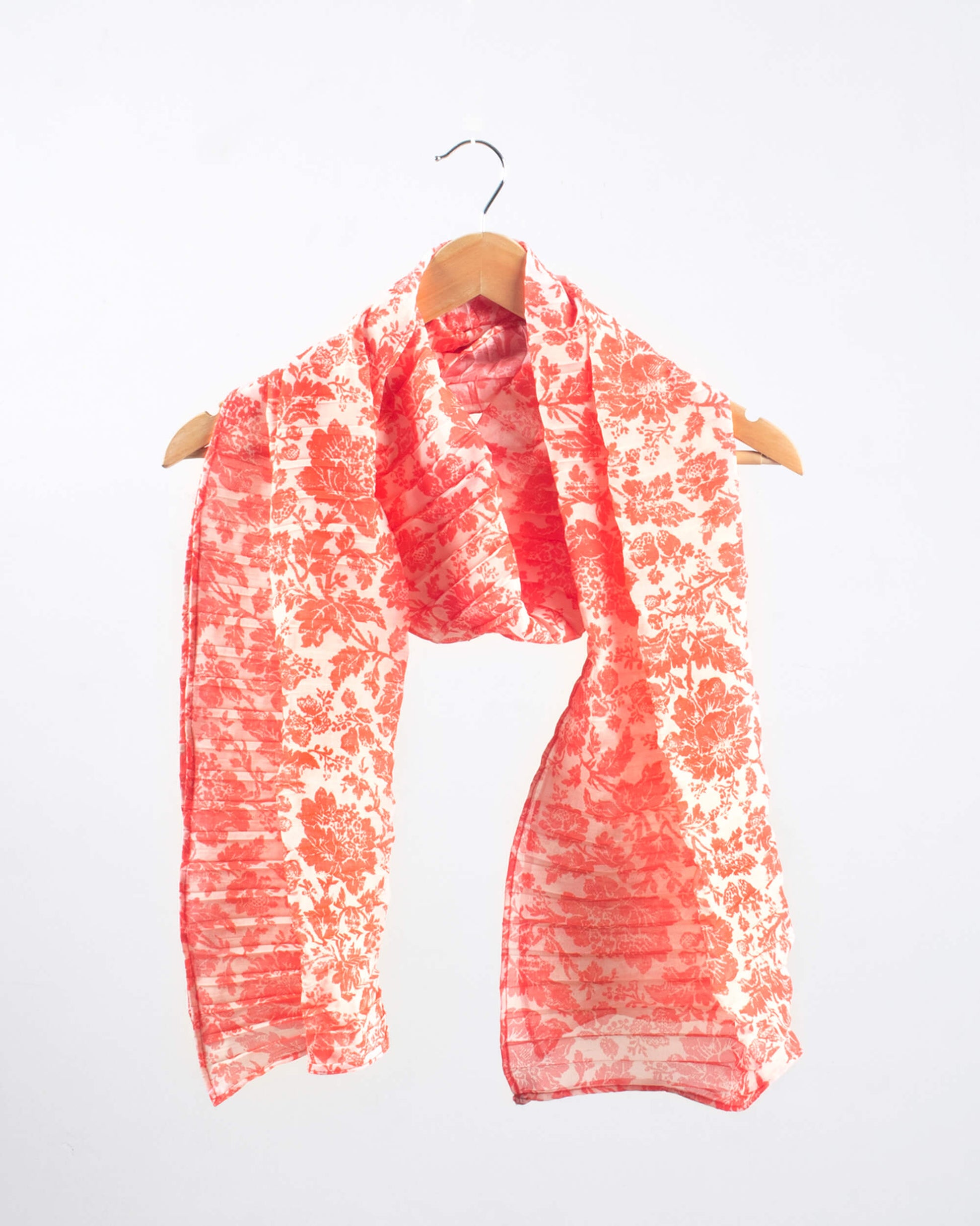 Red And Beige Floral Pattern Digital Print Georgette Pleated Stole