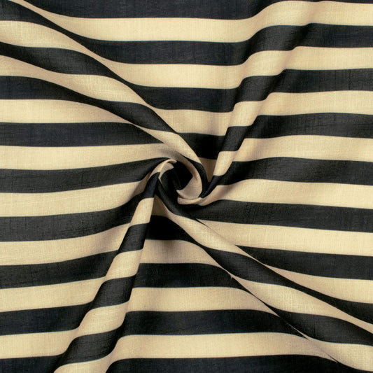 Black And Cream Stripes Pattern Digital Print Poly Linen Fabric Black And Cream Stripes Pattern Digital Print Poly Linen Fabric