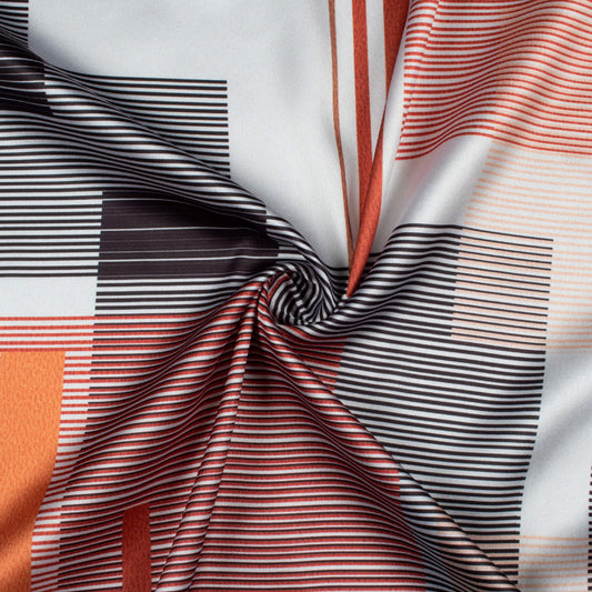 -10% offBlack And Burnt Orange Stripes Pattern Digital Print Japan Satin Fabric Black And Burnt Orange Stripes Pattern Digital Print Japan Satin Fabric