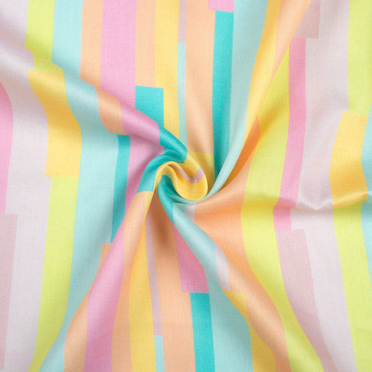 -10% offLemon Yellow And White Stripes Pattern Digital Print Cotton Cambric Fabric Lemon Yellow And White Stripes Pattern Digital Print Cotton Cambric Fabric
