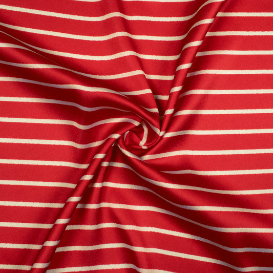 Vermilion Red And Sand Beige Stripes Pattern Digital Print Ultra Premium Butter Crepe Fabric Vermilion Red And Sand Beige Stripes Pattern Digital Print Ultra Premium Butter Crepe Fabric