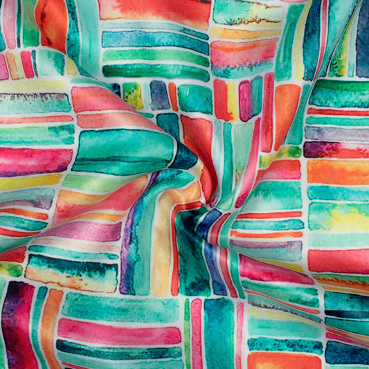 -20% offMulti-Color Stripes Pattern Digital Print Lush Satin Fabric Multi-Color Stripes Pattern Digital Print Lush Satin Fabric