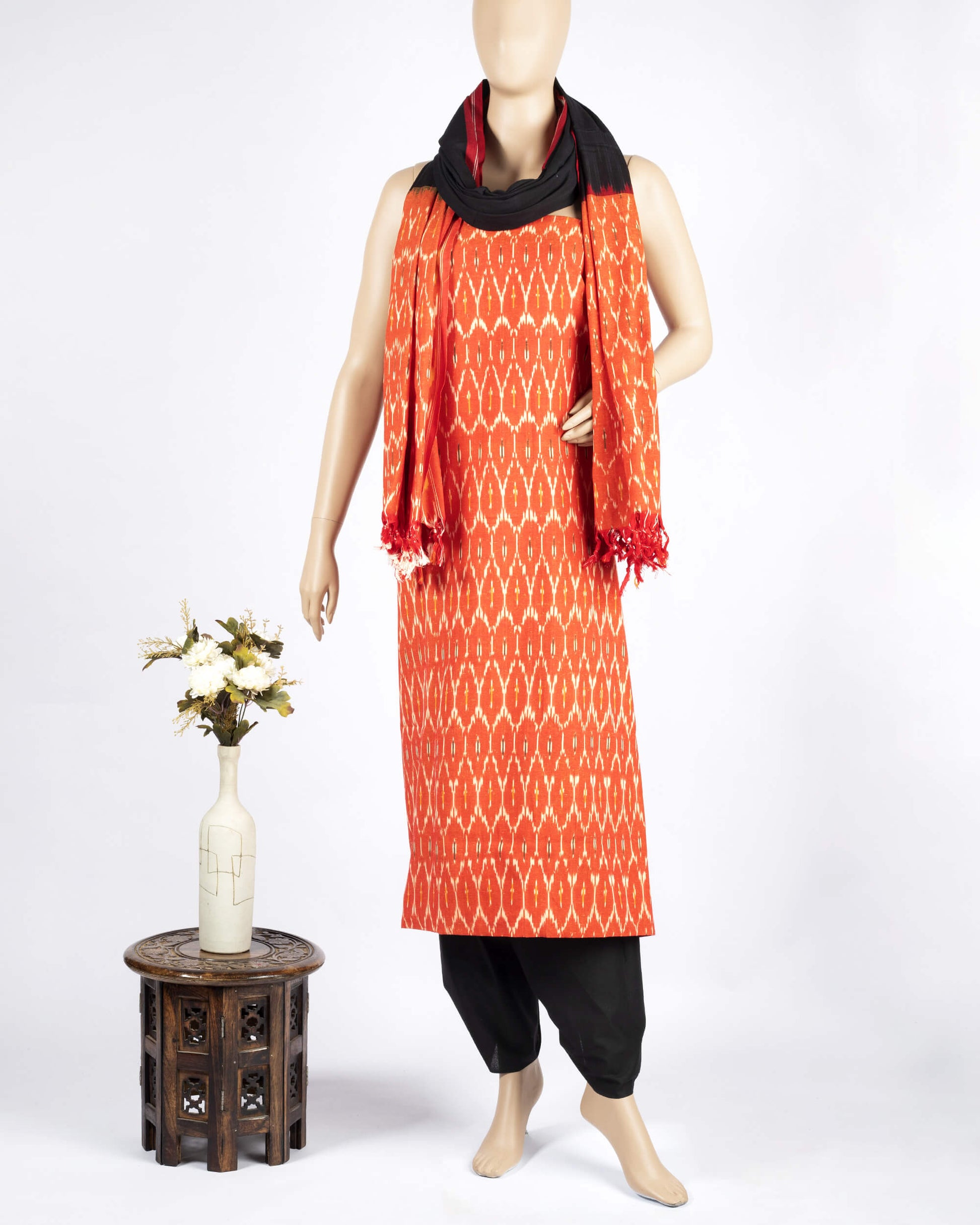 Pochampally Ikat Weave Cotton 3PC Unstiched Suit Set