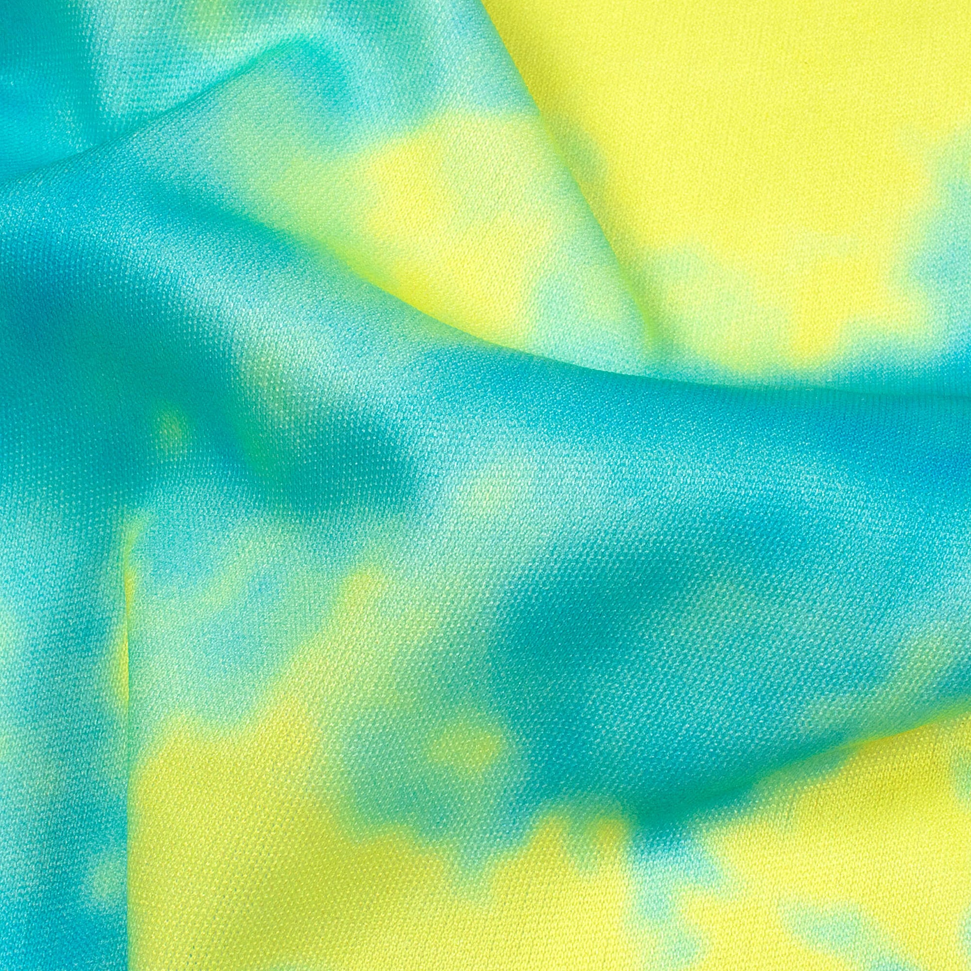 Lemon Yellow And Olympic Blue Tye And Dye Pattern Digital Print Lycra Fabric (Width 58 Inches)