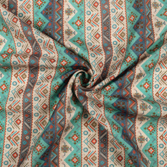 Tortilla Brown And White Traditional Pattern Digital Print Linen Textured Fabric (Width 56 Inches) Tortilla Brown And White Traditional Pattern Digital Print Linen Textured Fabric (Width 56 Inches)