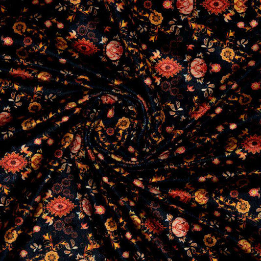Black Traditional Pattern Digital Print Velvet Fabric (Width 58 inches) Black Traditional Pattern Digital Print Velvet Fabric (Width 58 inches)