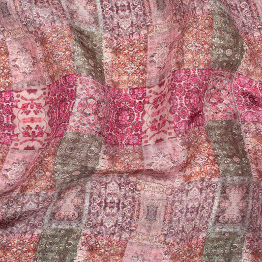 -10% offBaby Pink And Dark Brown Traditional Pattern Digital Print Muslin Fabric Baby Pink And Dark Brown Traditional Pattern Digital Print Muslin Fabric