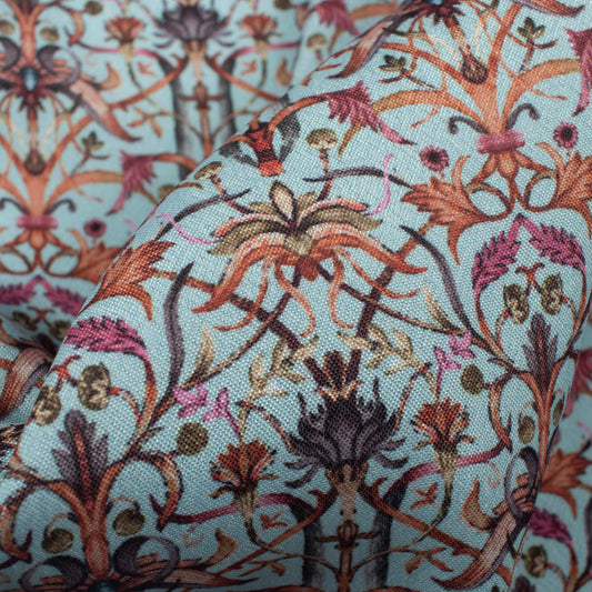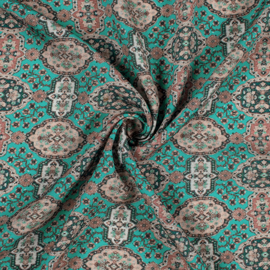 Tiffany Blue And Cream Traditional Pattern Digital Print Muslin Fabric Tiffany Blue And Cream Traditional Pattern Digital Print Muslin Fabric