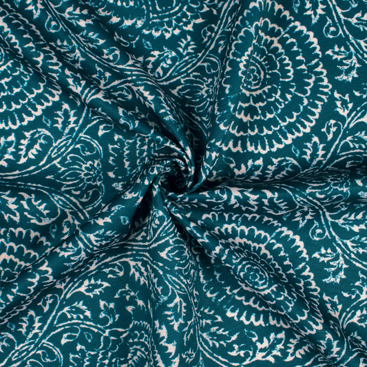 Peacock Blue And White Traditional Pattern Digital Print Ultra Premium Butter Crepe Fabric Peacock Blue And White Traditional Pattern Digital Print Ultra Premium Butter Crepe Fabric