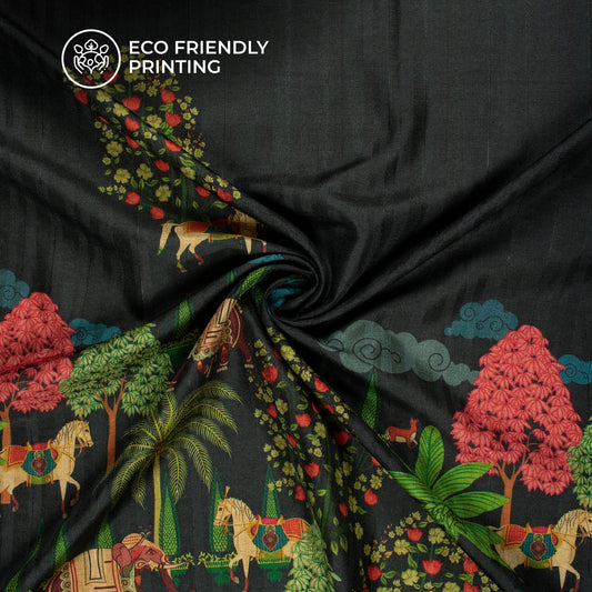 -9% offBlack Traditional Madhuvanii Printed Art Tusser Silk Fabric Black Traditional Madhuvanii Printed Art Tusser Silk Fabric