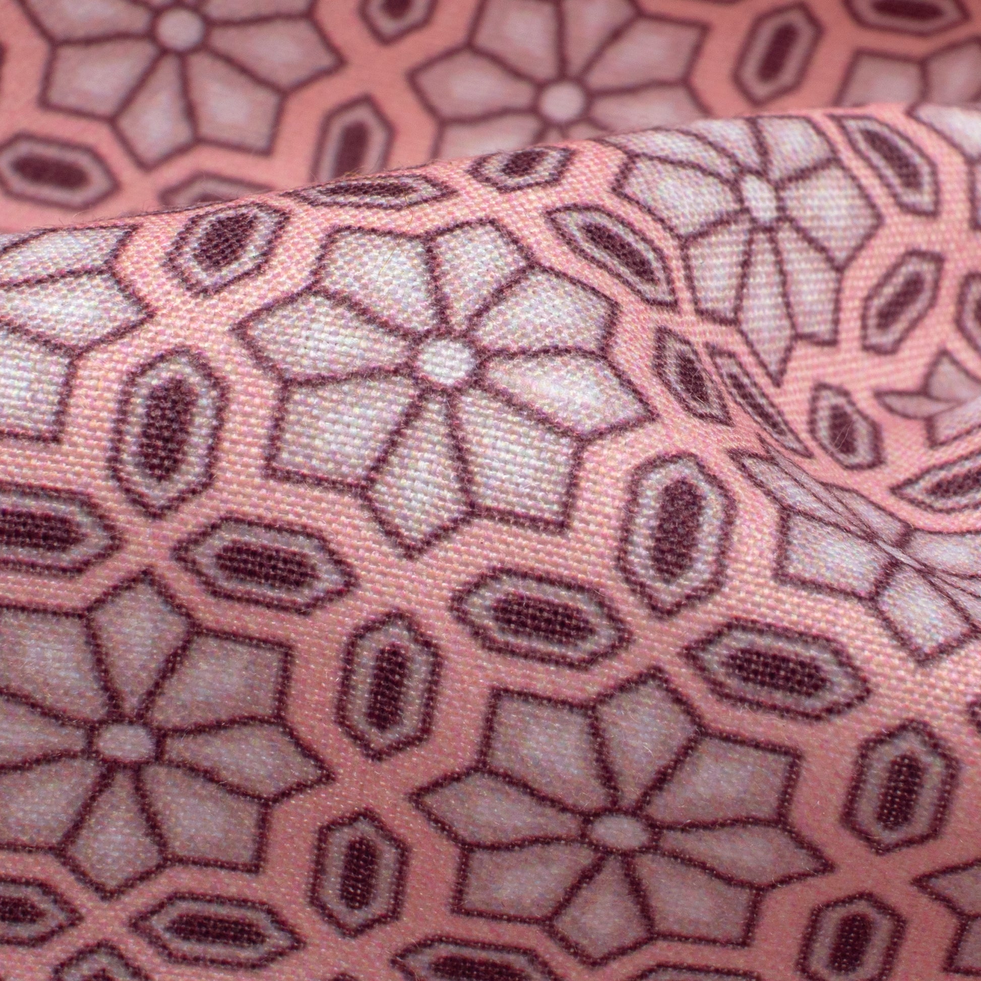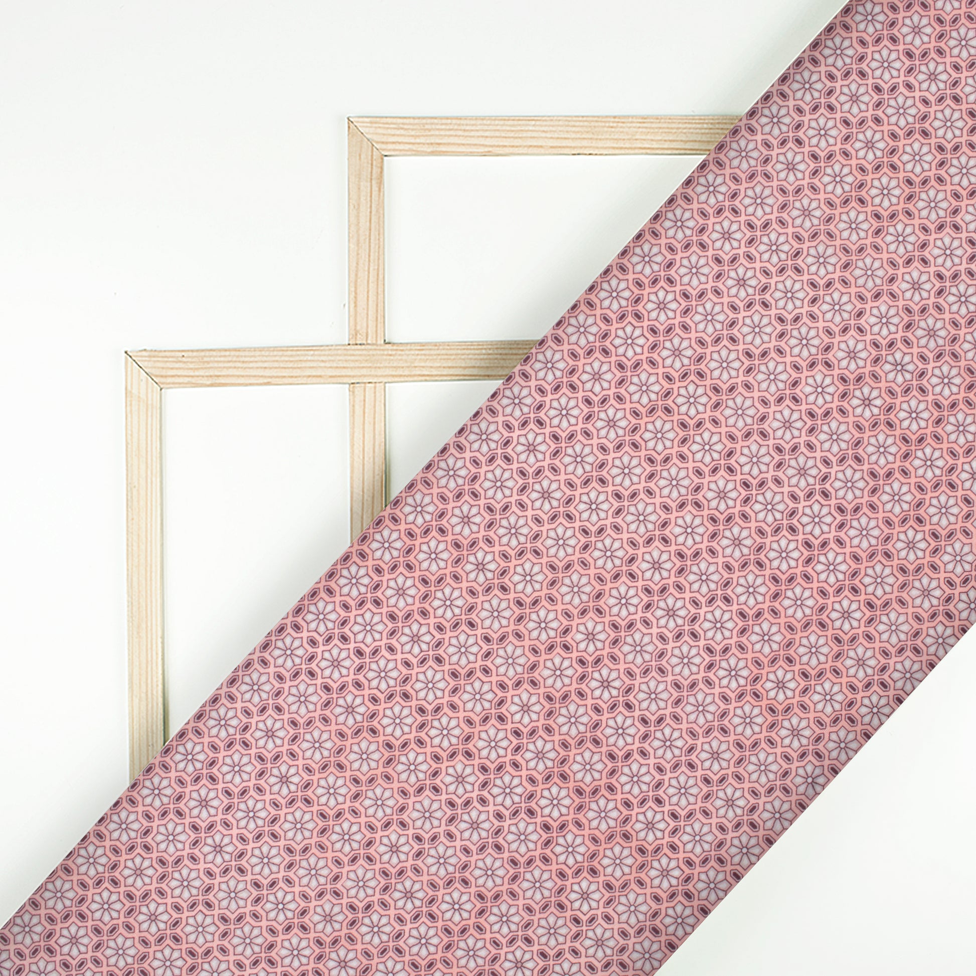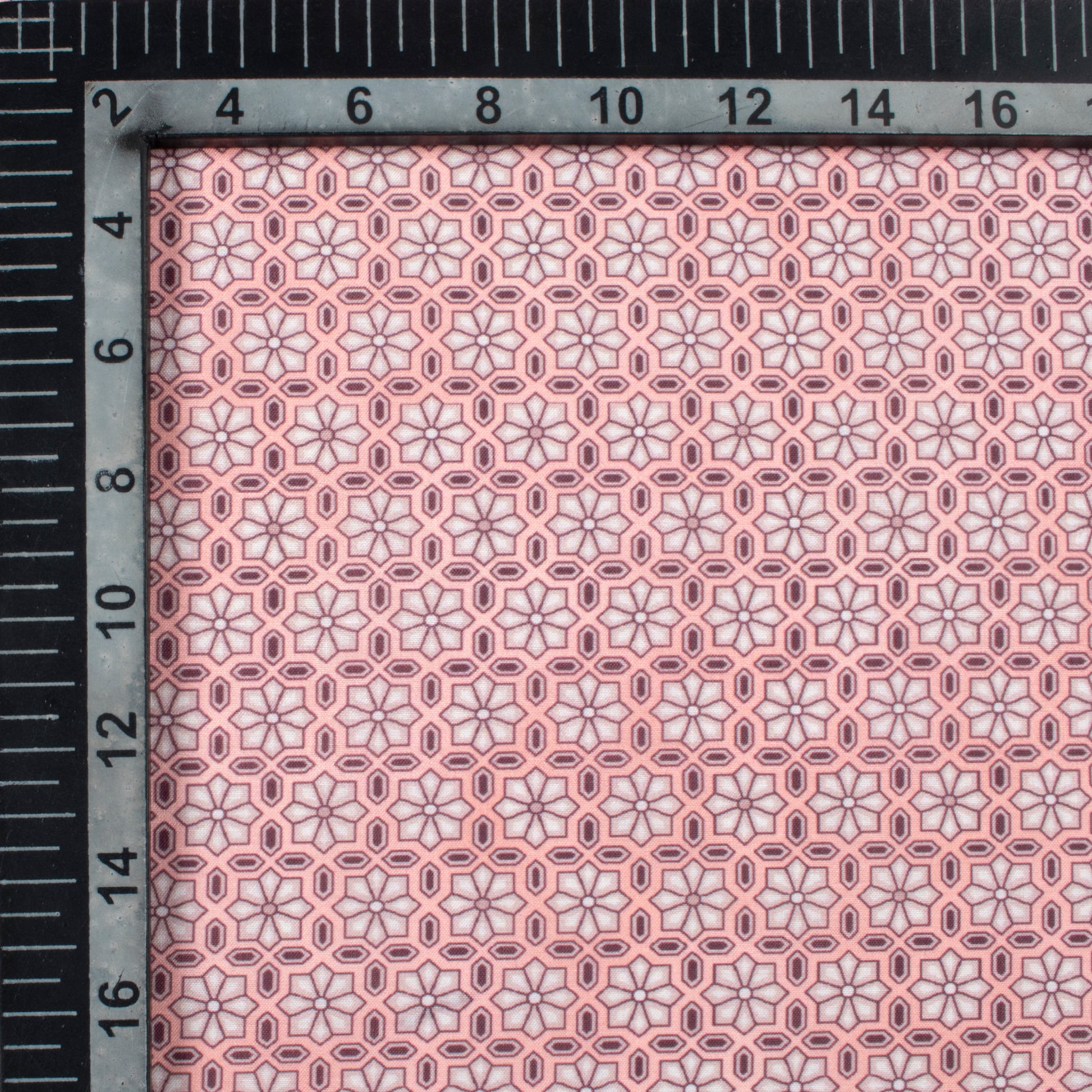 Baby Pink And Dark Brown Traditional Pattern Digital Print Muslin Fabric