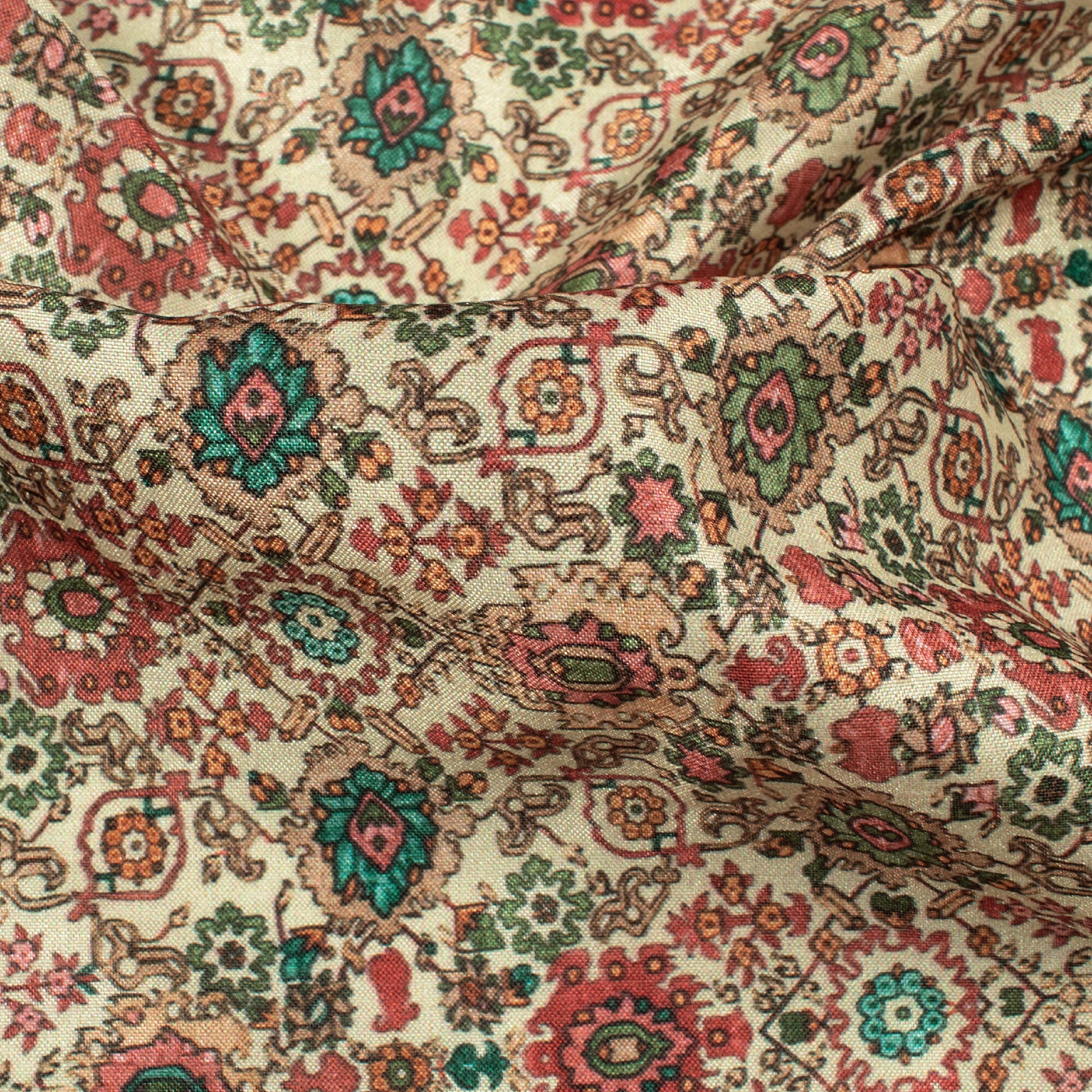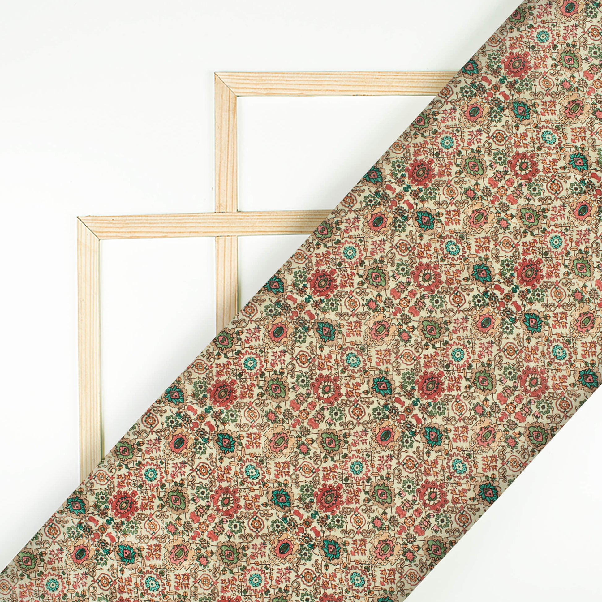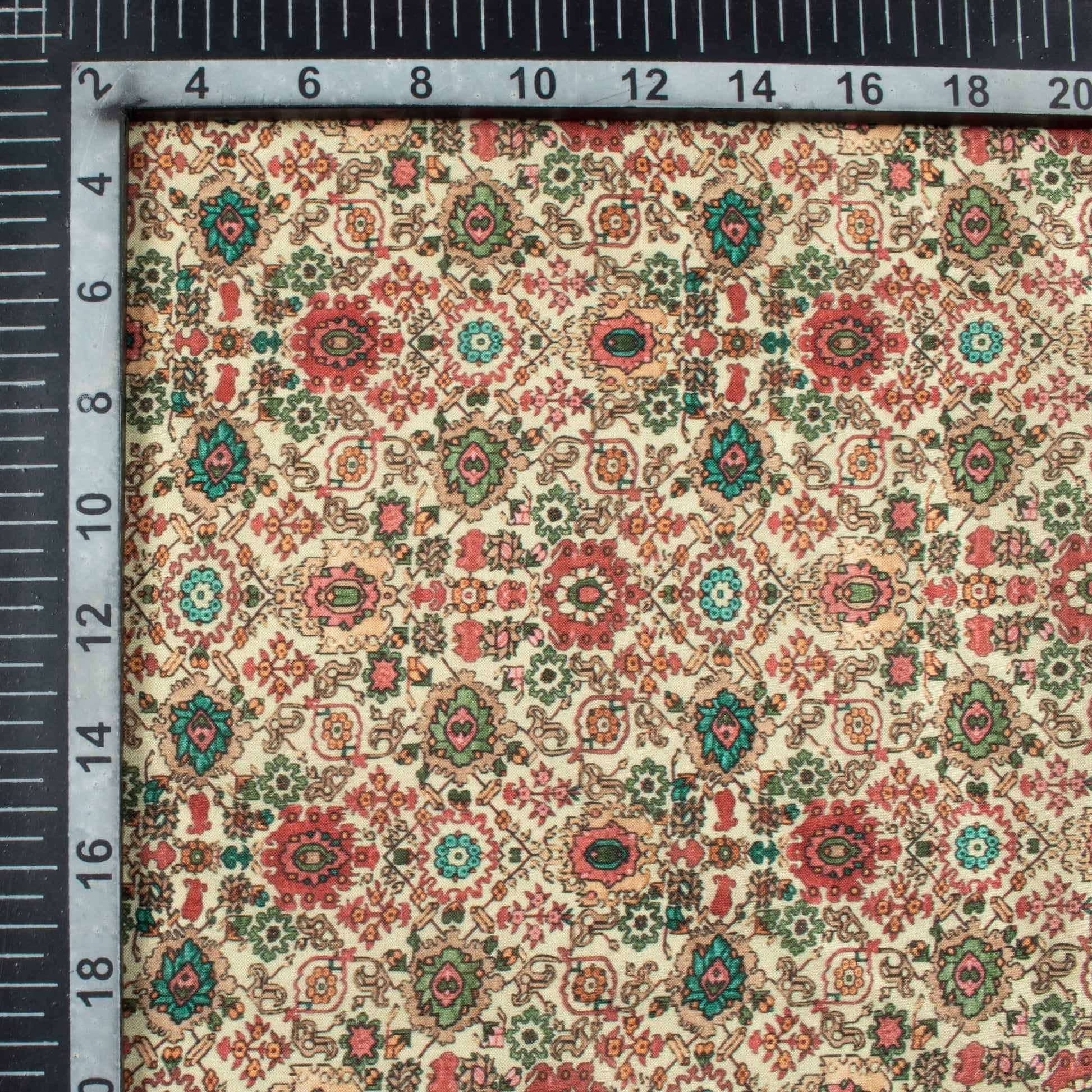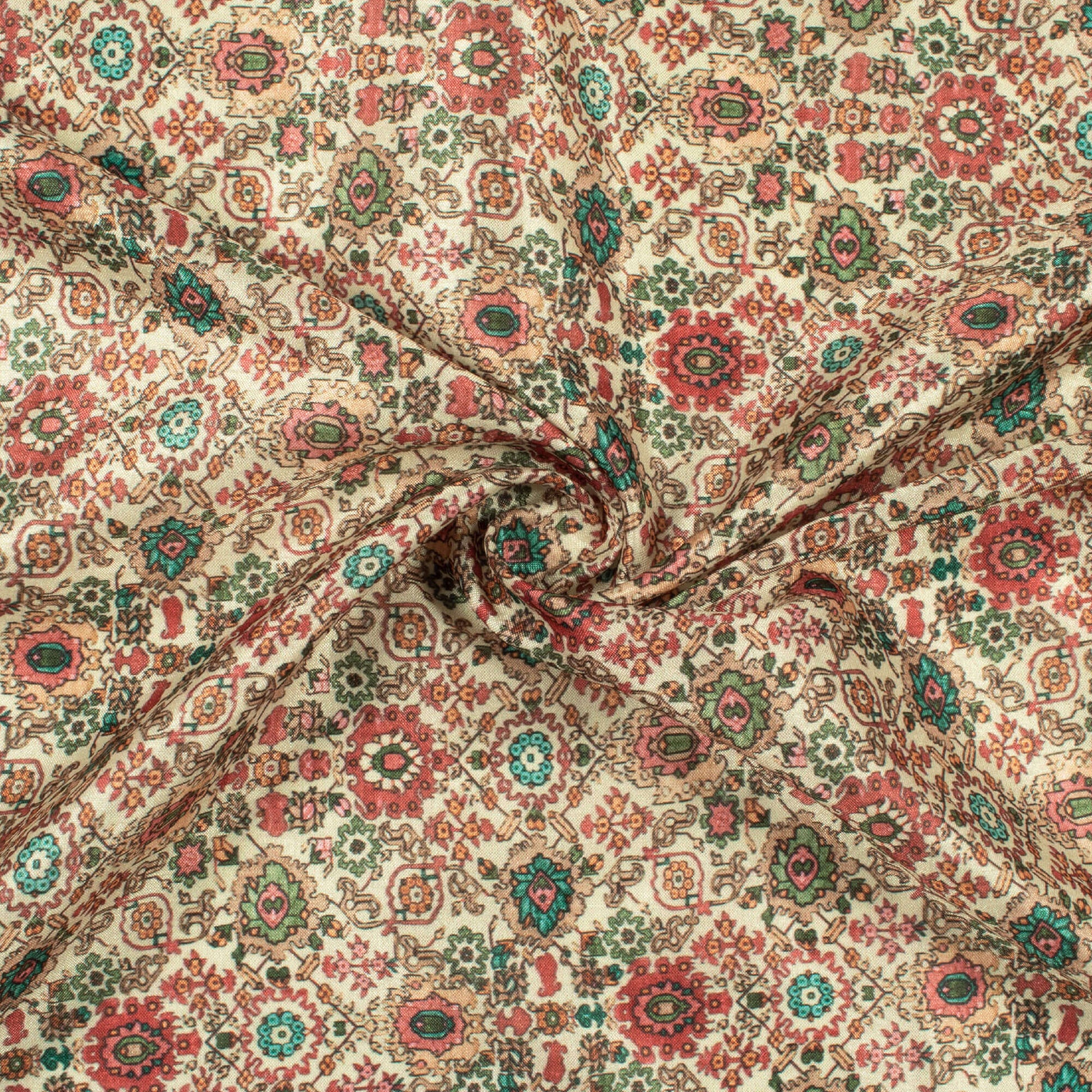 Cream And Red Traditional Pattern Digital Print Flat Silk Fabric