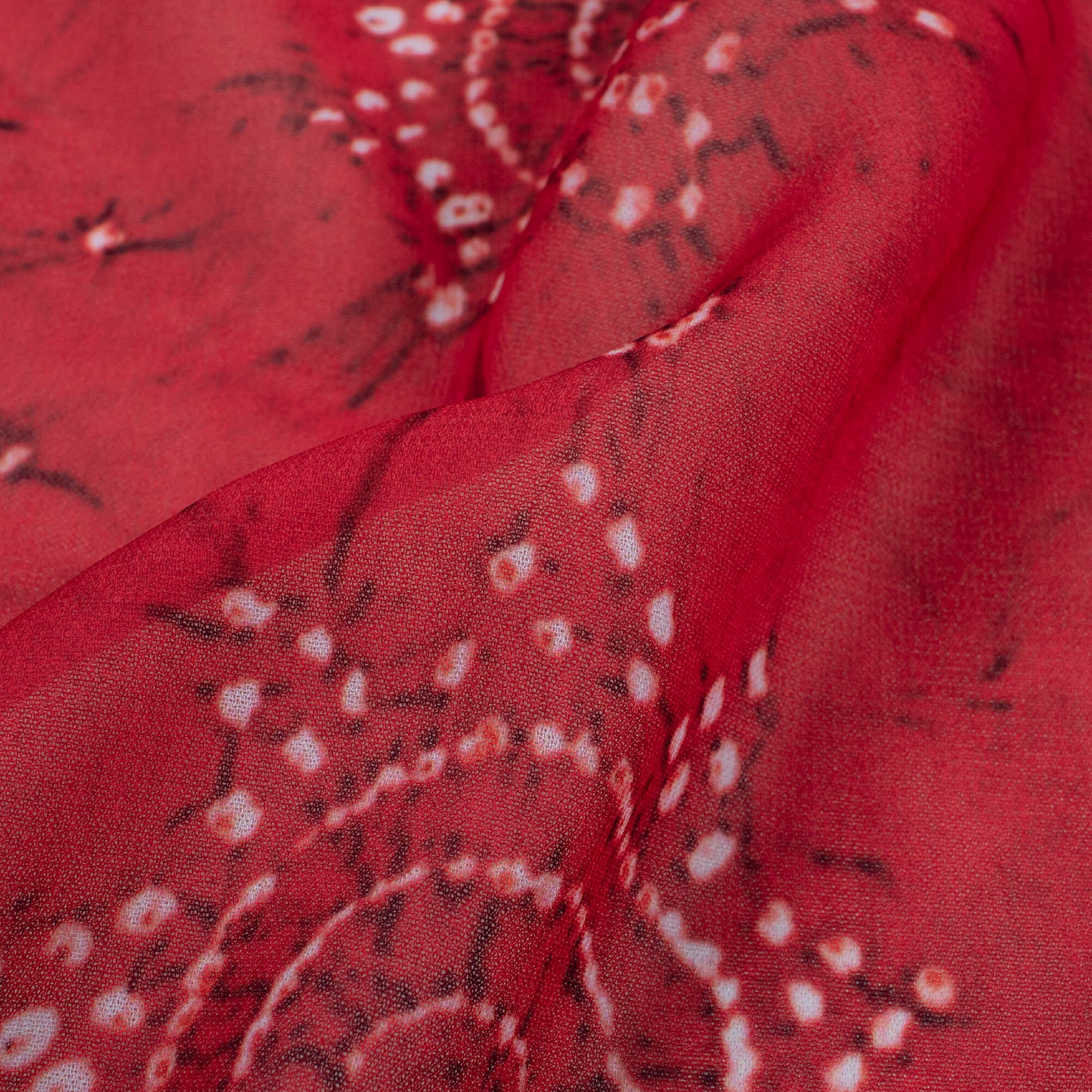 Mahogany Red And White Traditional Pattern Digital Print Georgette Fabric