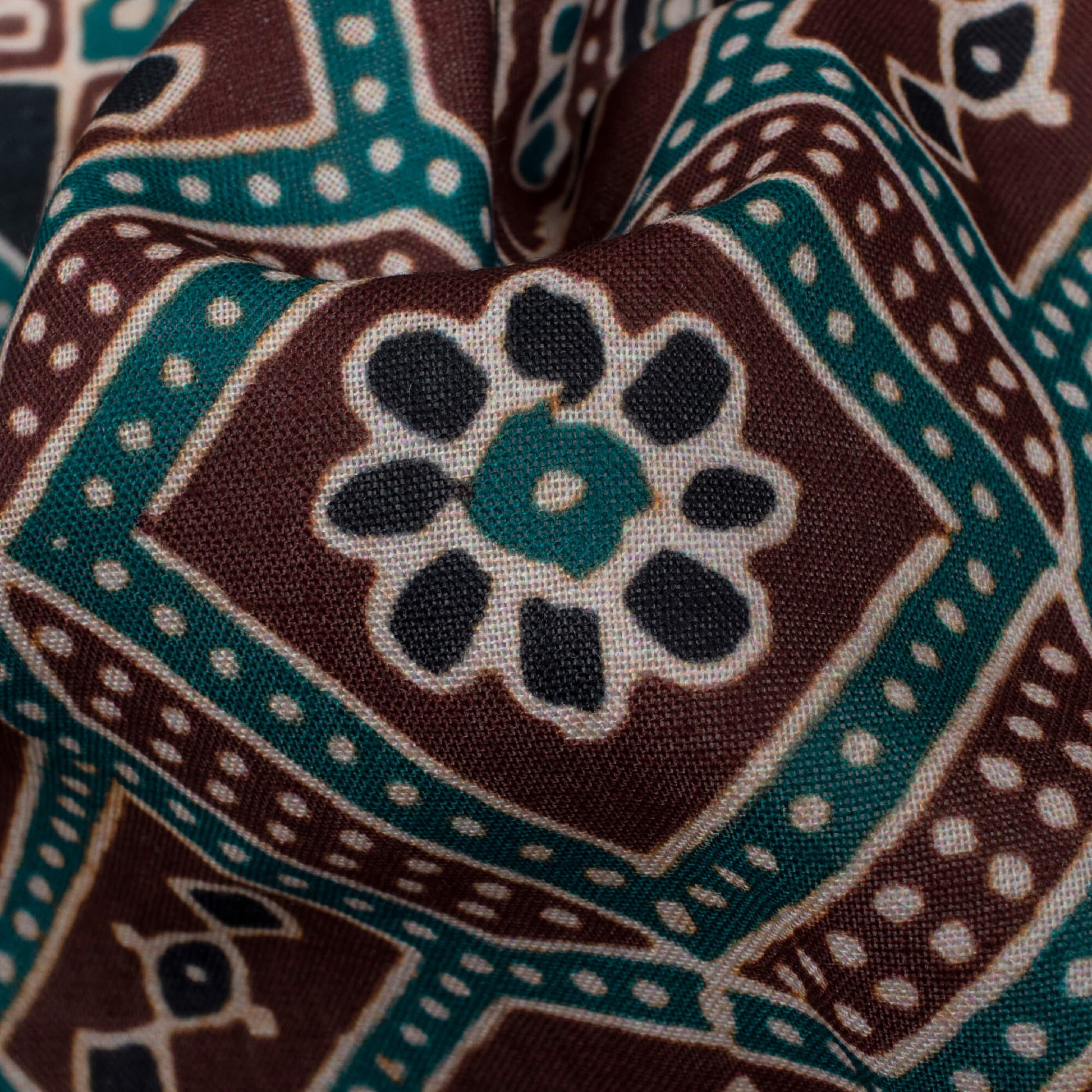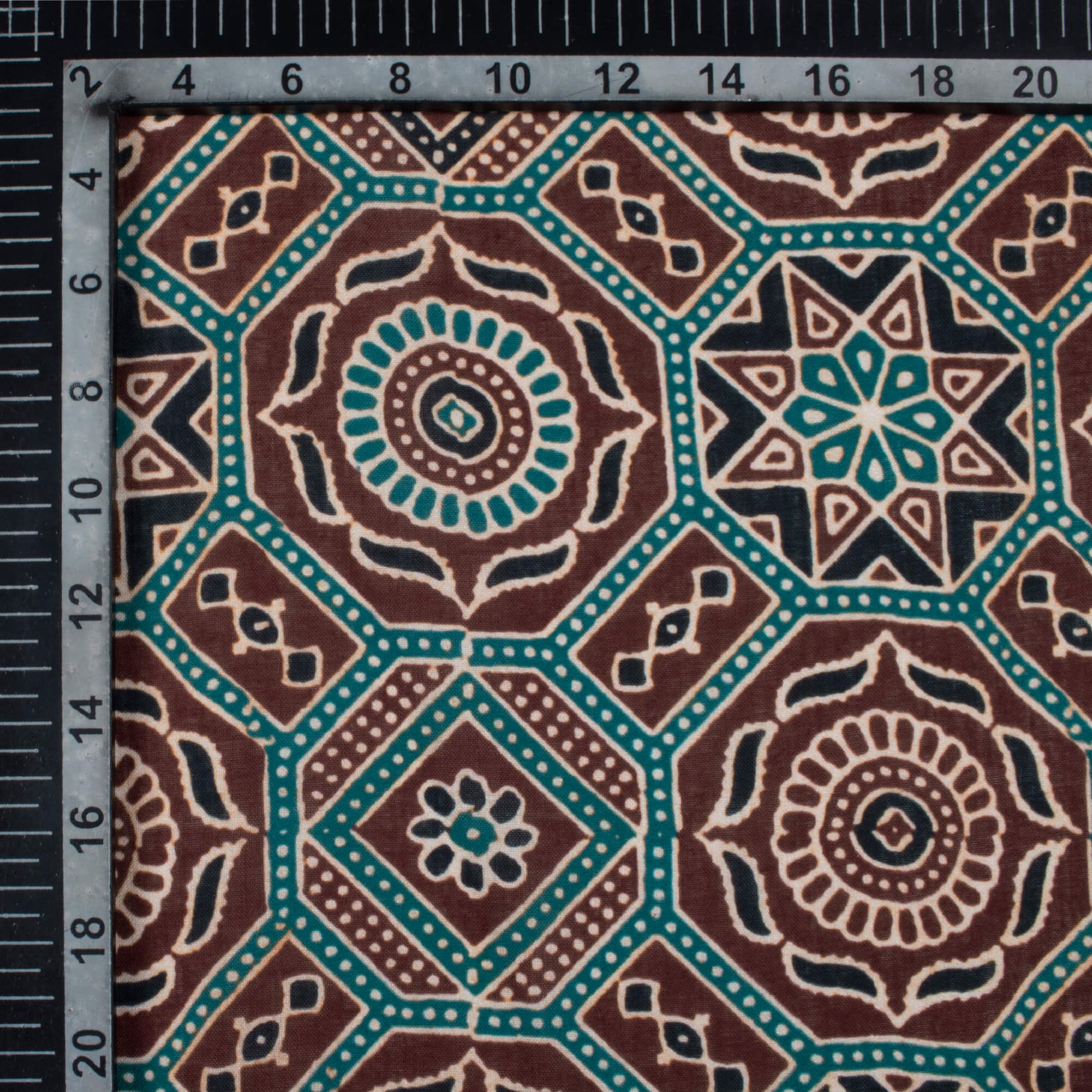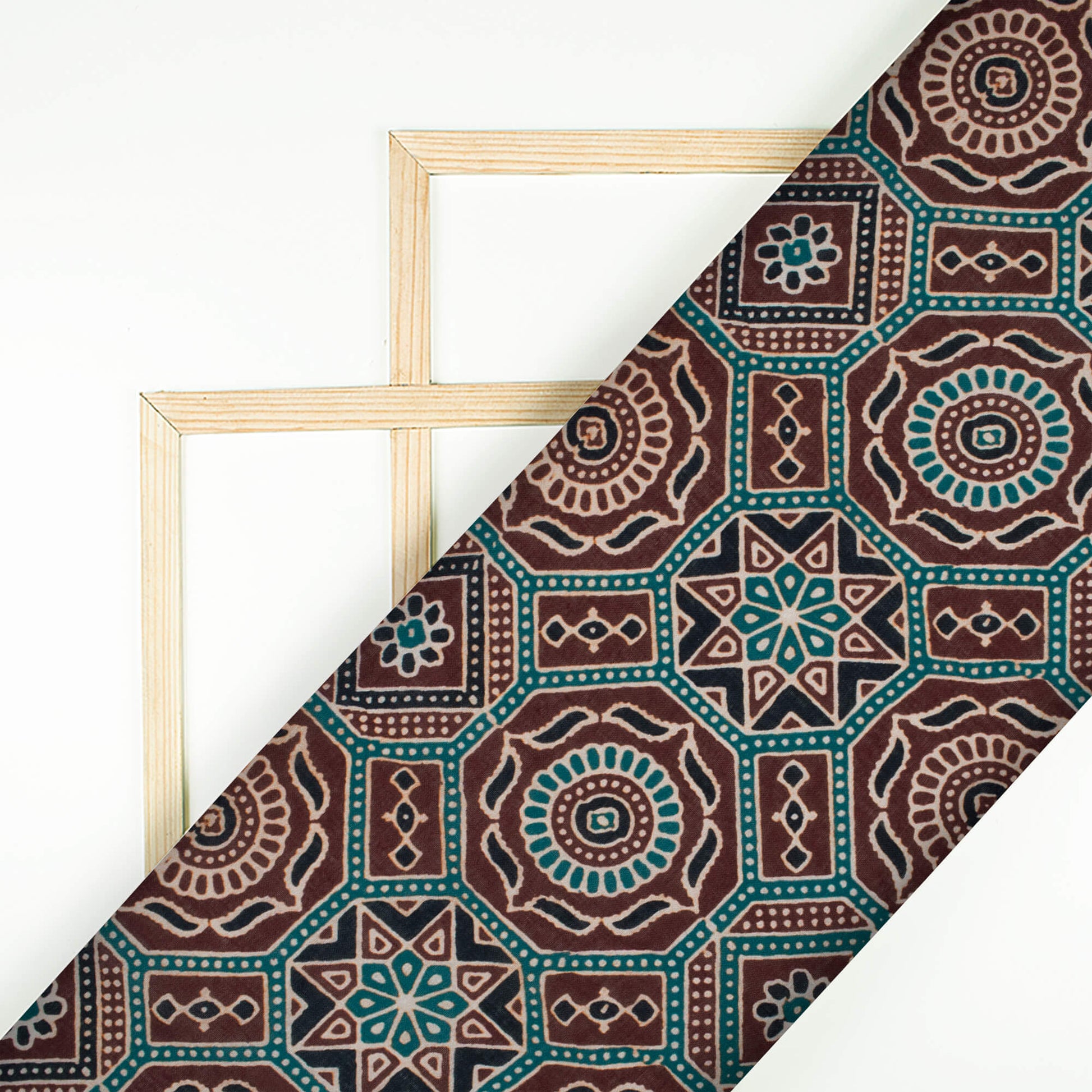 Maroon And Aegean Blue Ajrakh Pattern Digital Print Poly Cambric Fabric