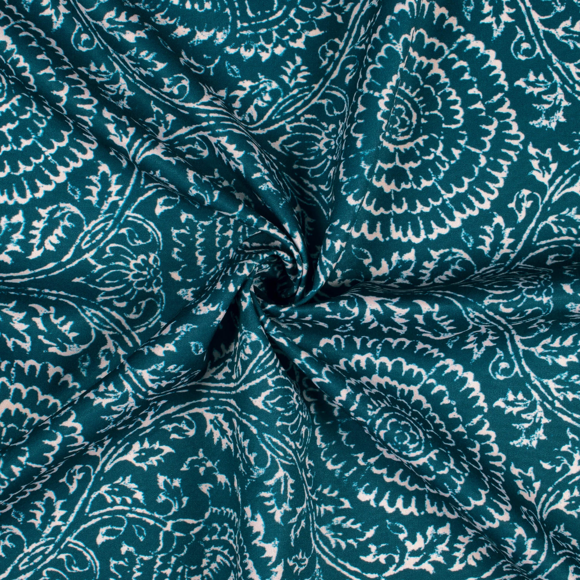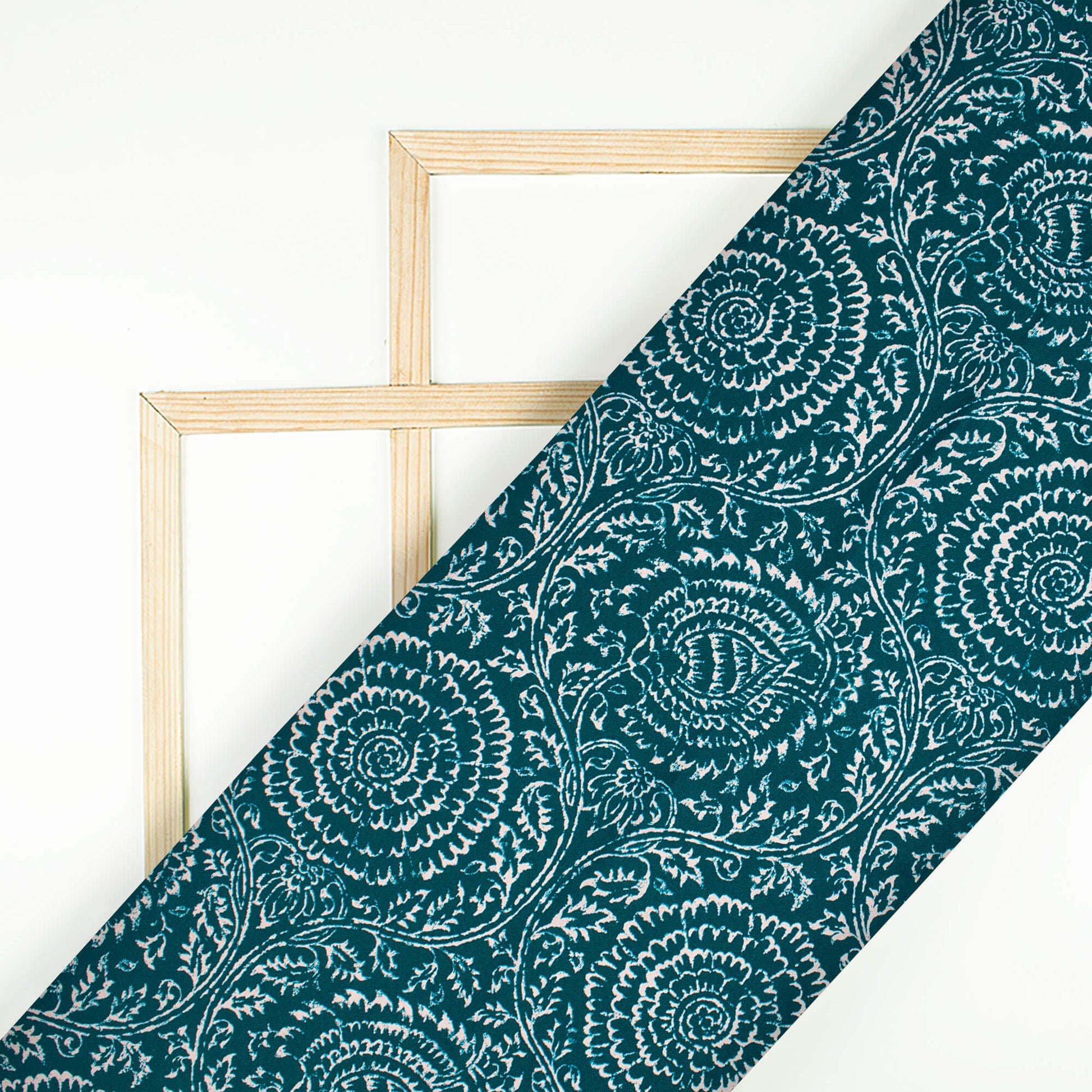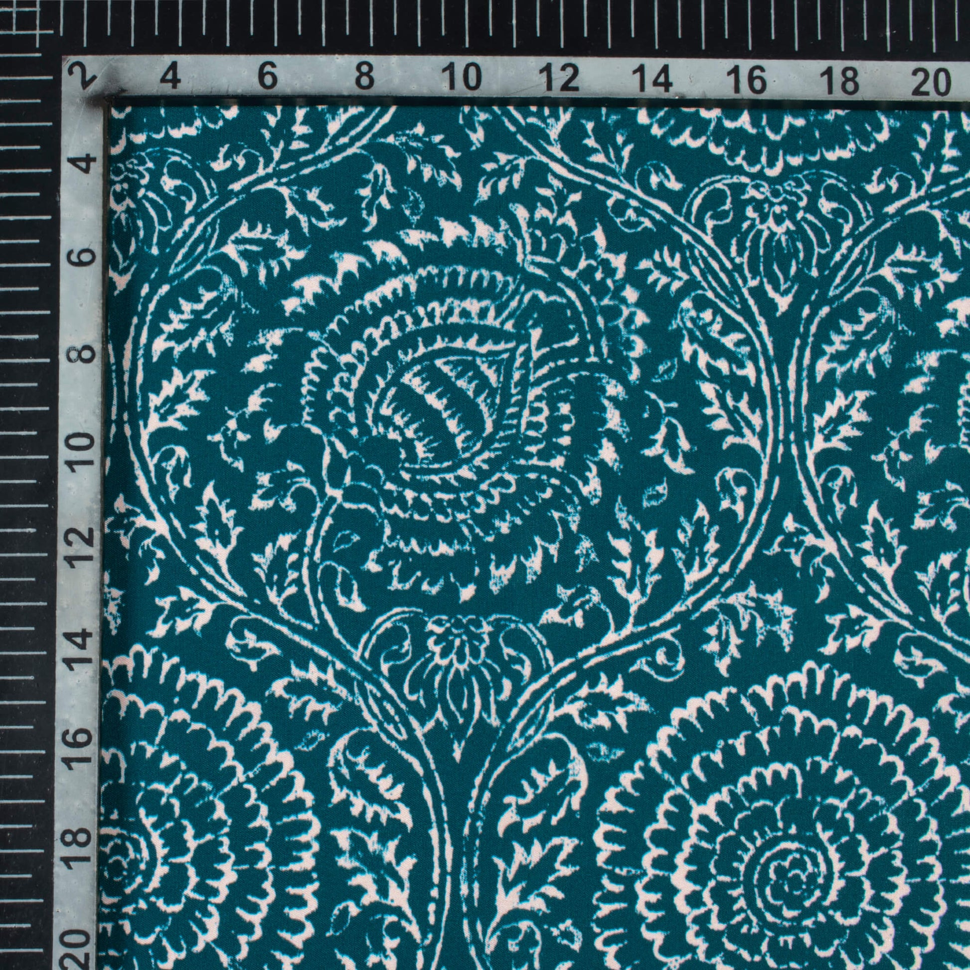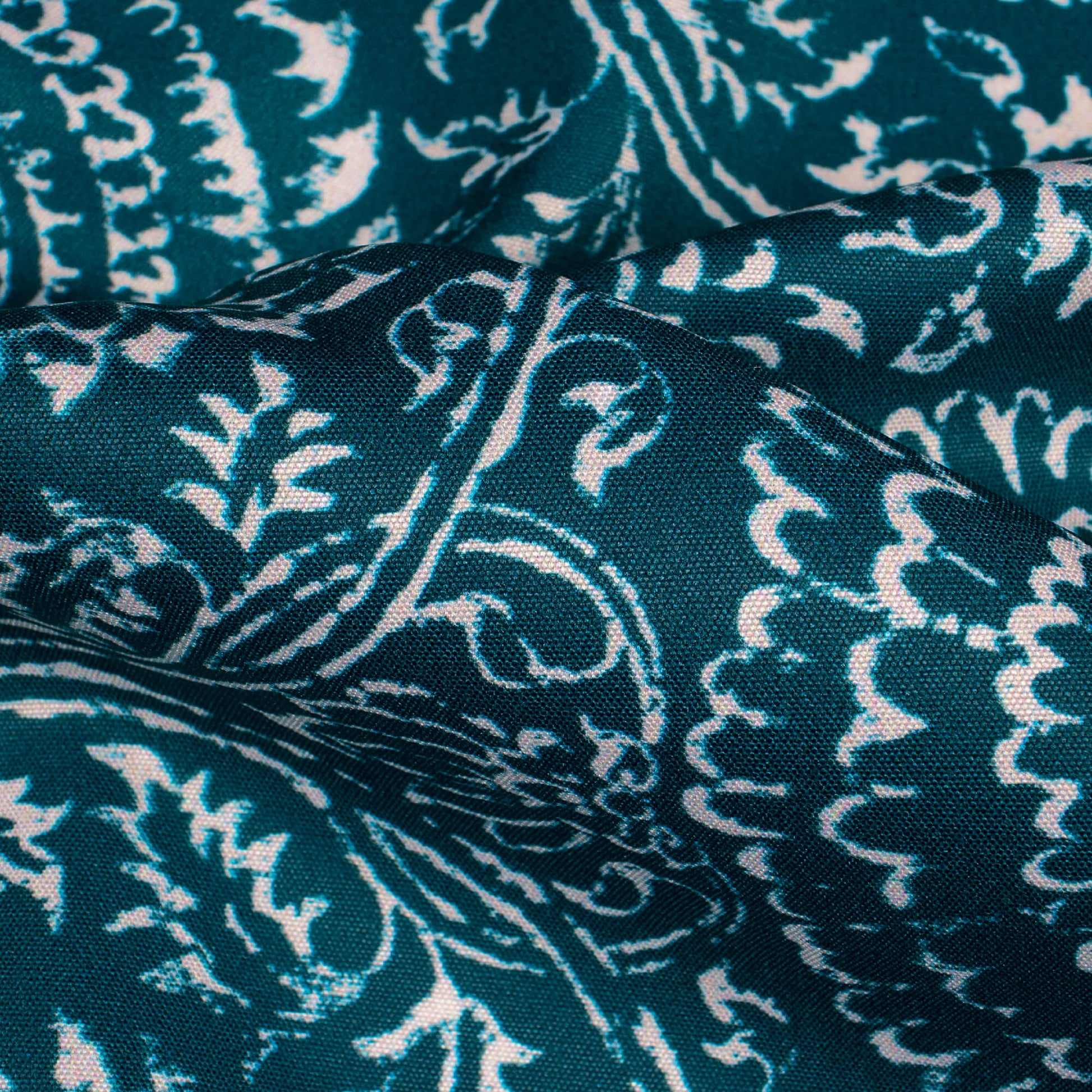 Peacock Blue And White Traditional Pattern Digital Print Ultra Premium Butter Crepe Fabric