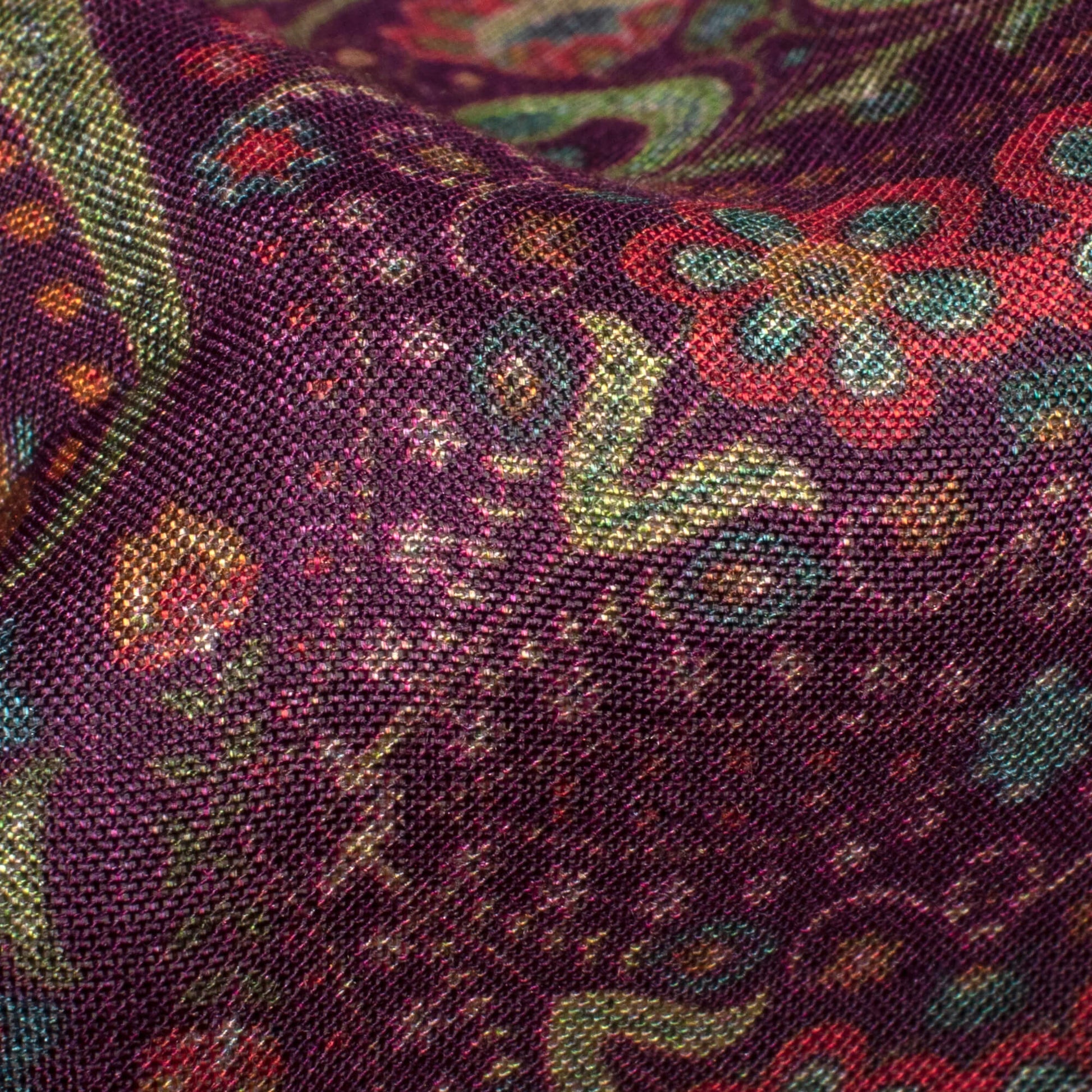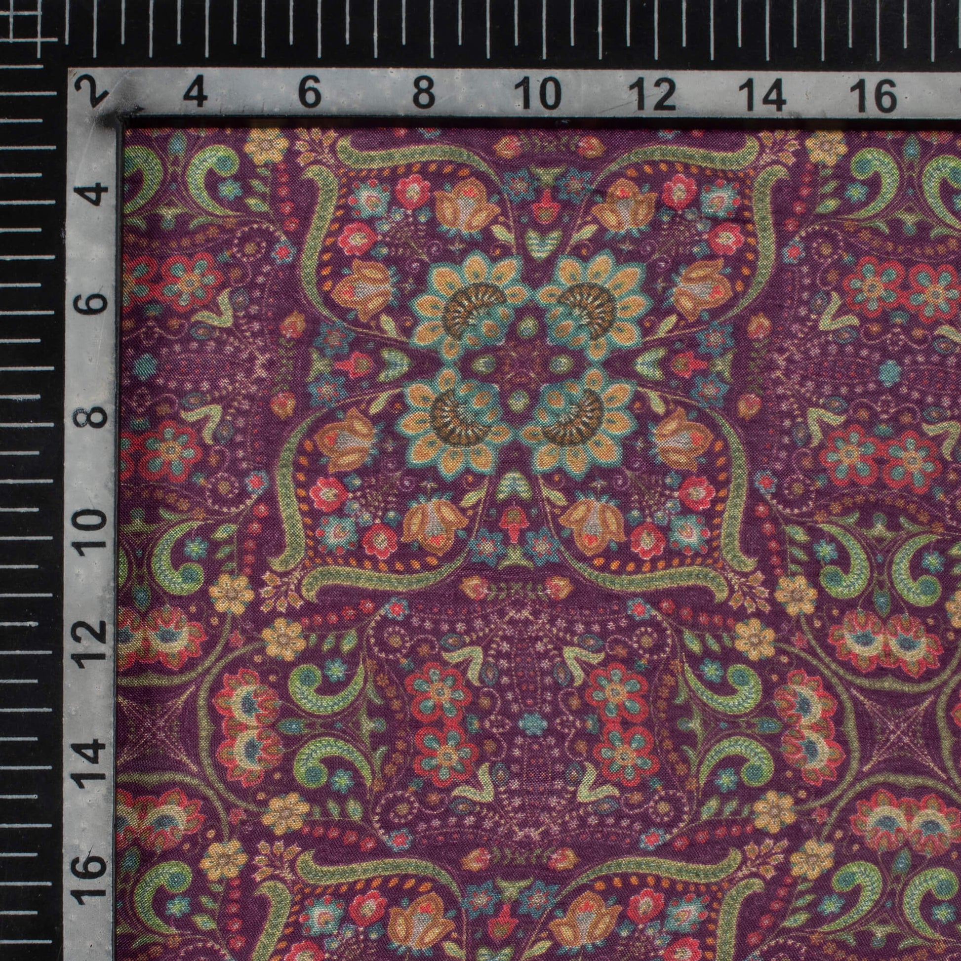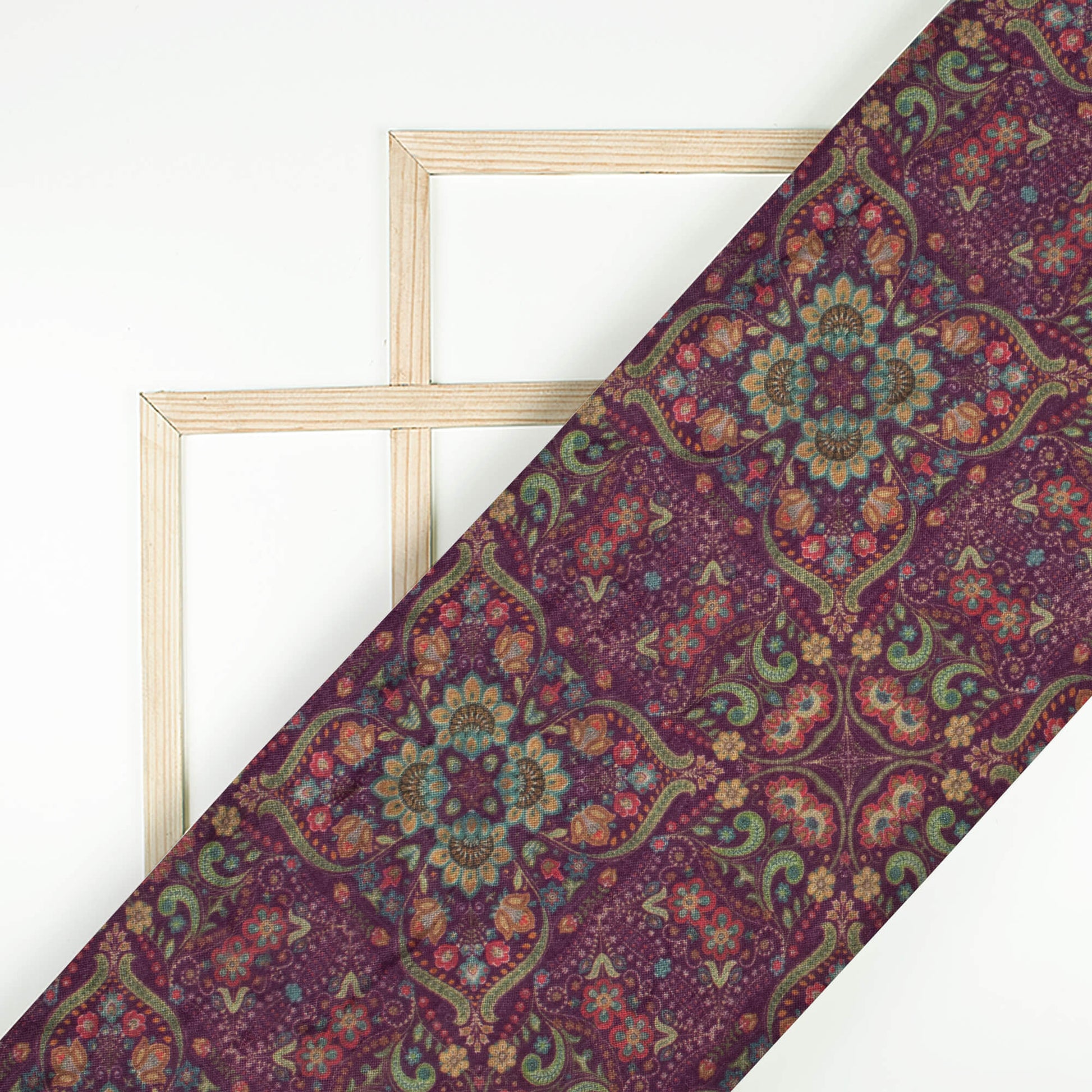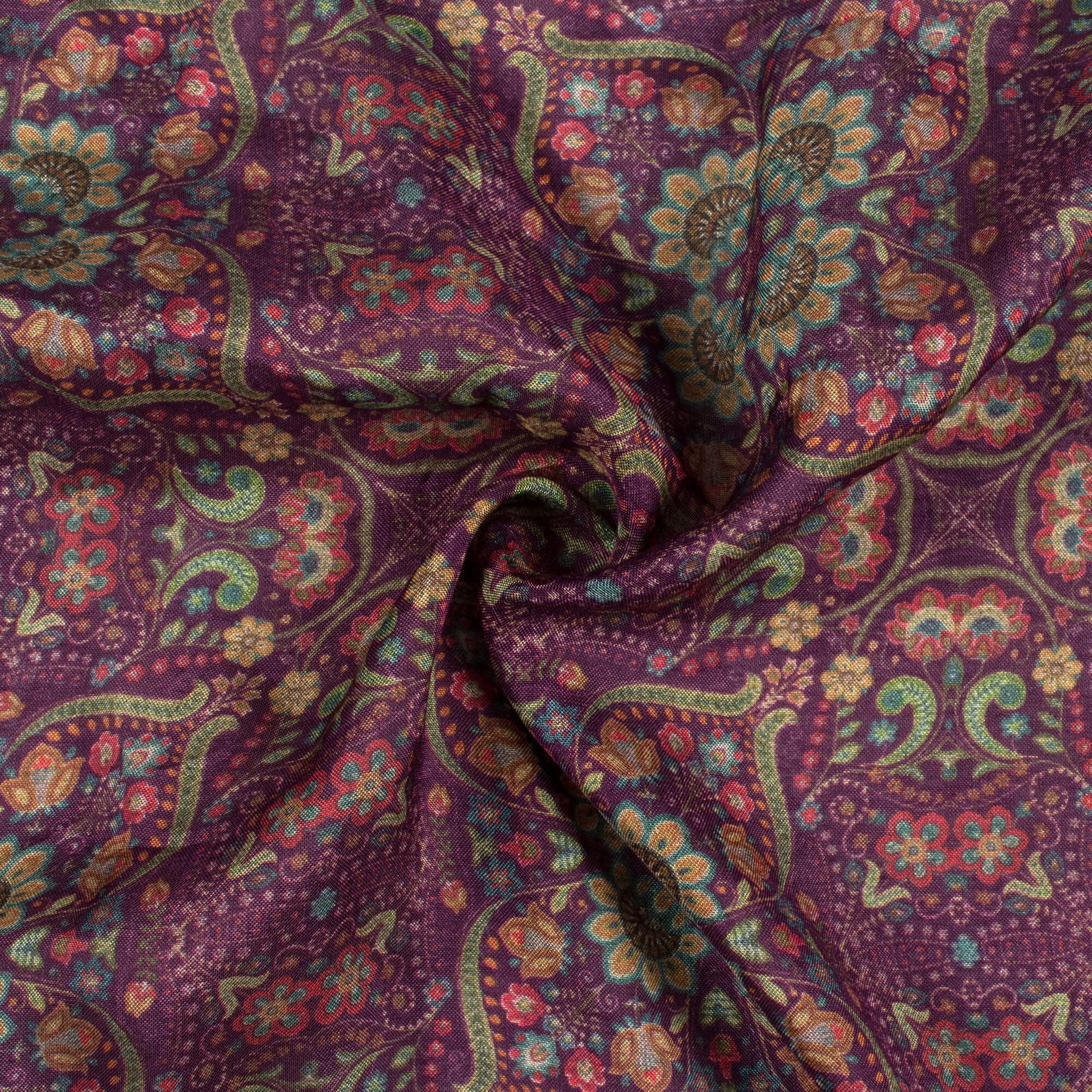 Seal Brown And Fern Green Traditional Pattern Digital Print Viscose Muslin Fabric