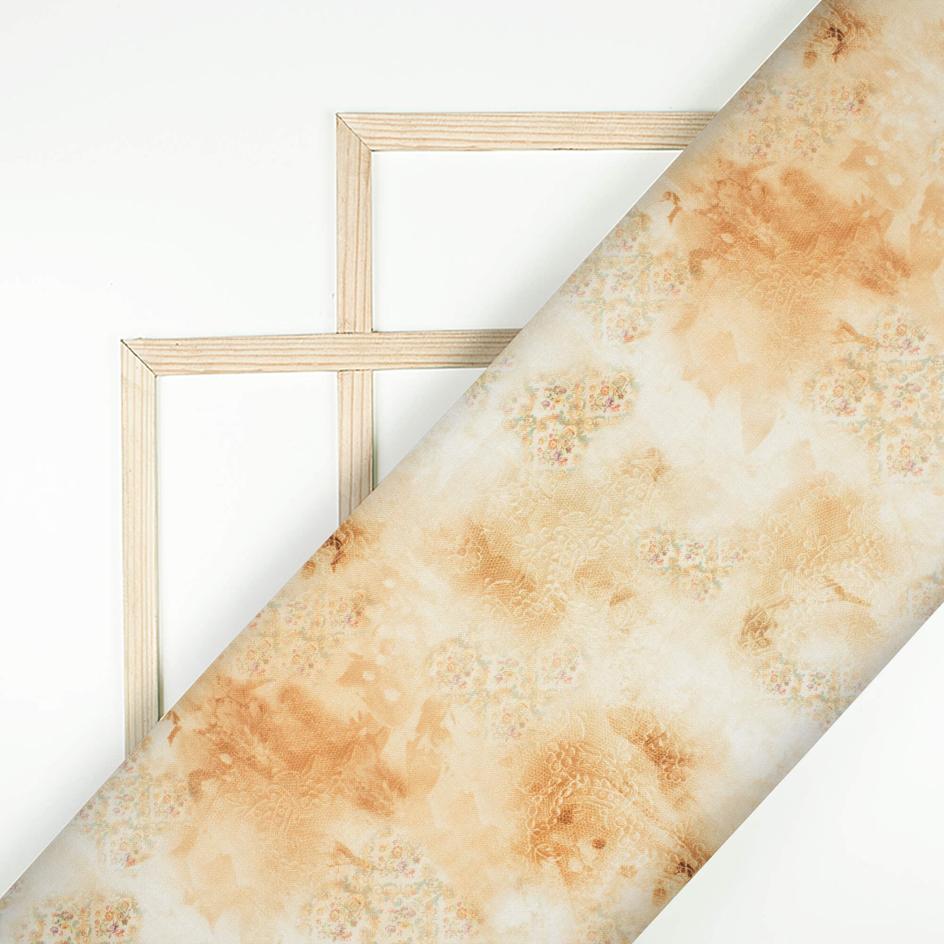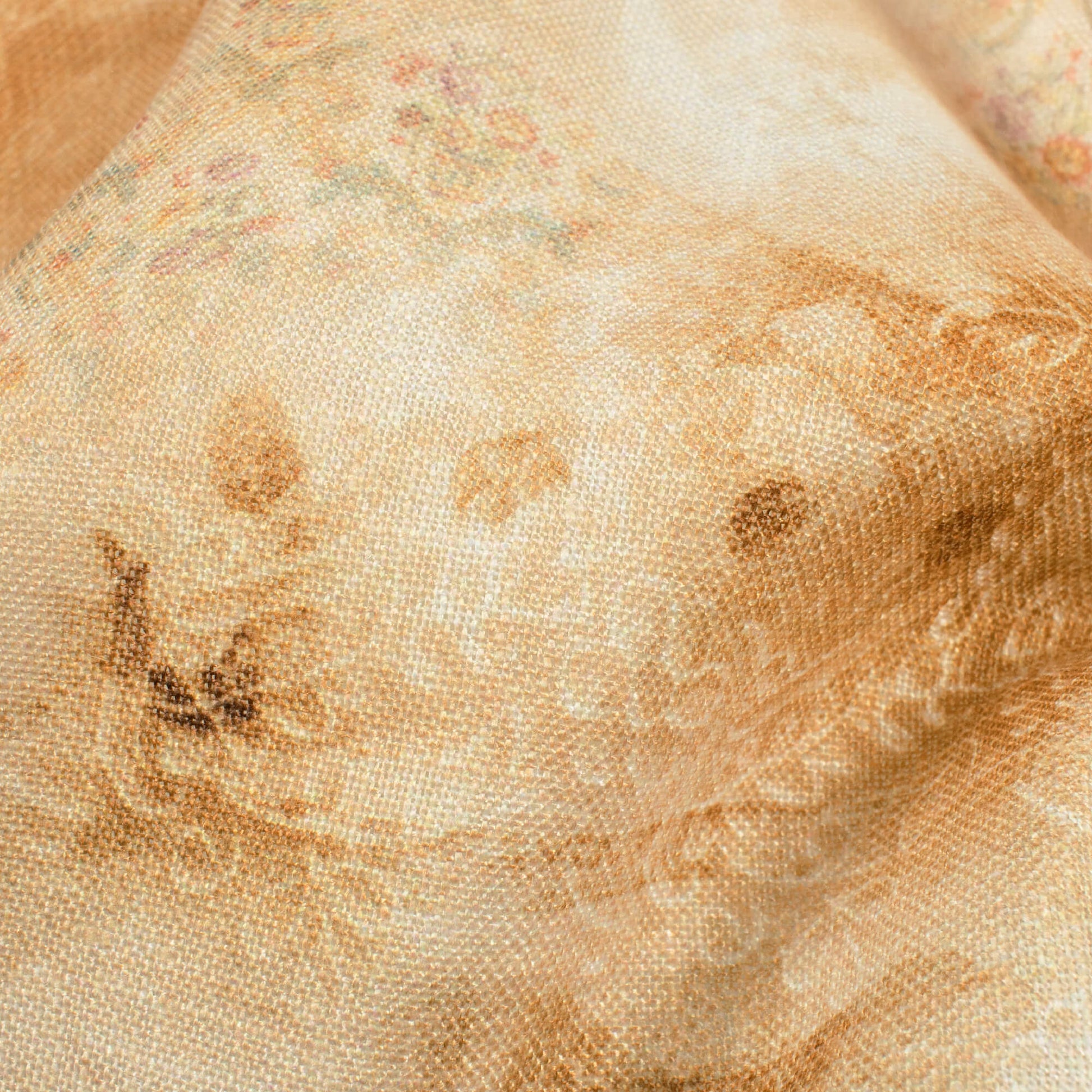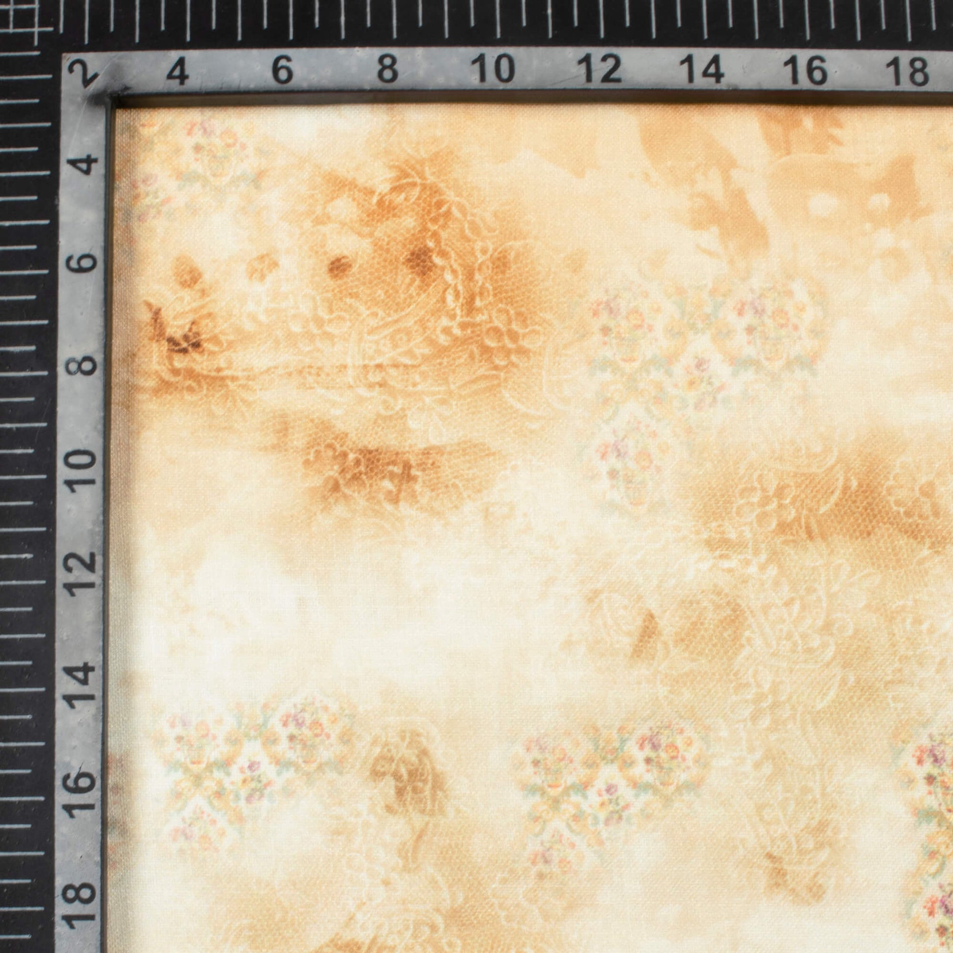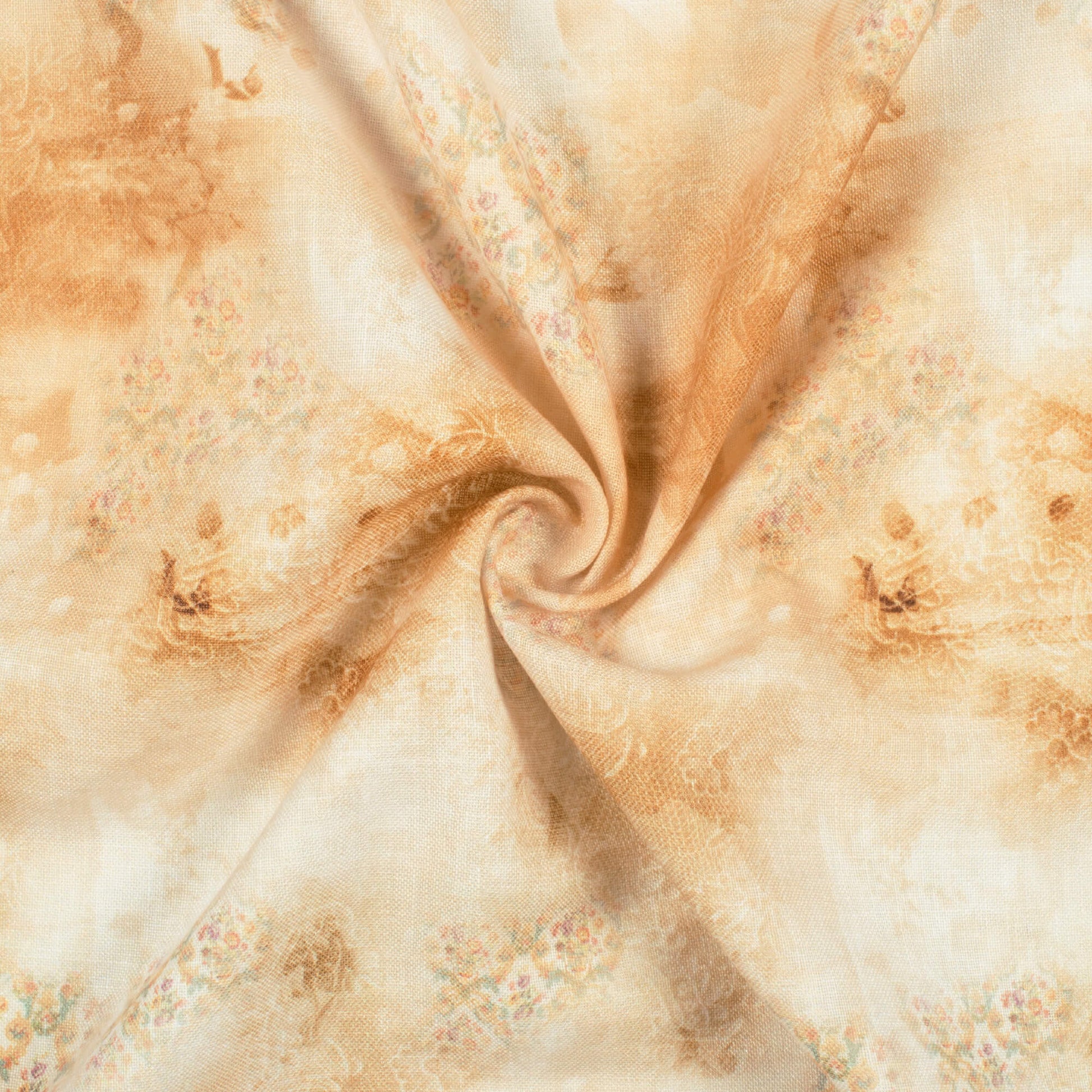 Tortilla Brown And White Traditional Pattern Digital Print Linen Textured Fabric (Width 56 Inches)