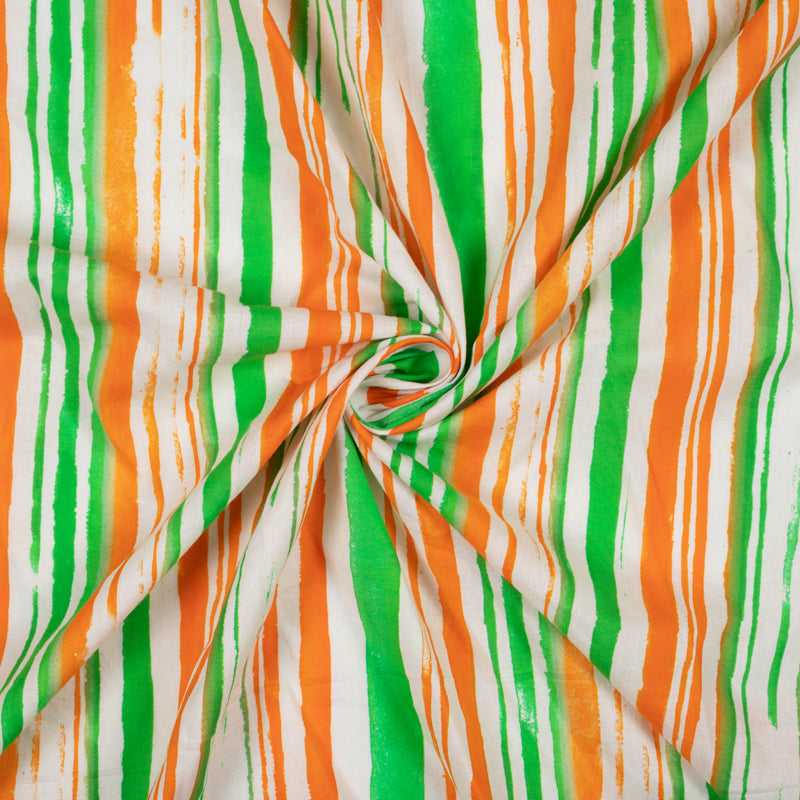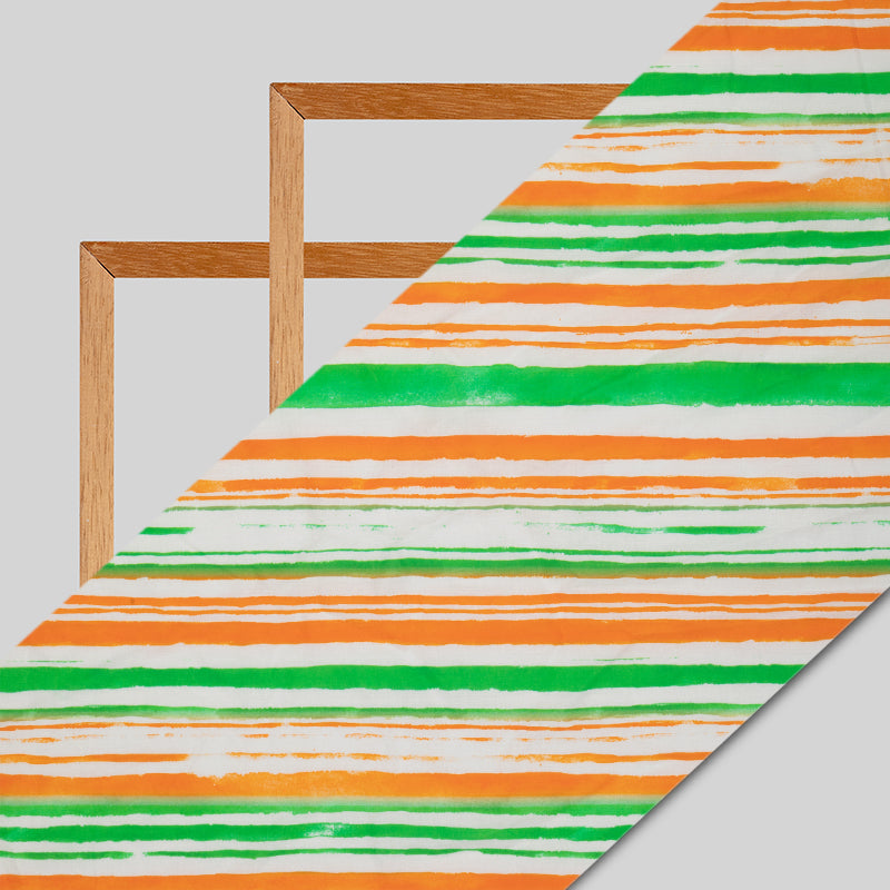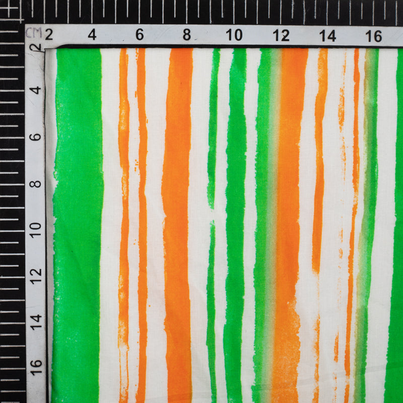 Tricolor Stripes Pattern Digital Print Cotton Cambric Fabric