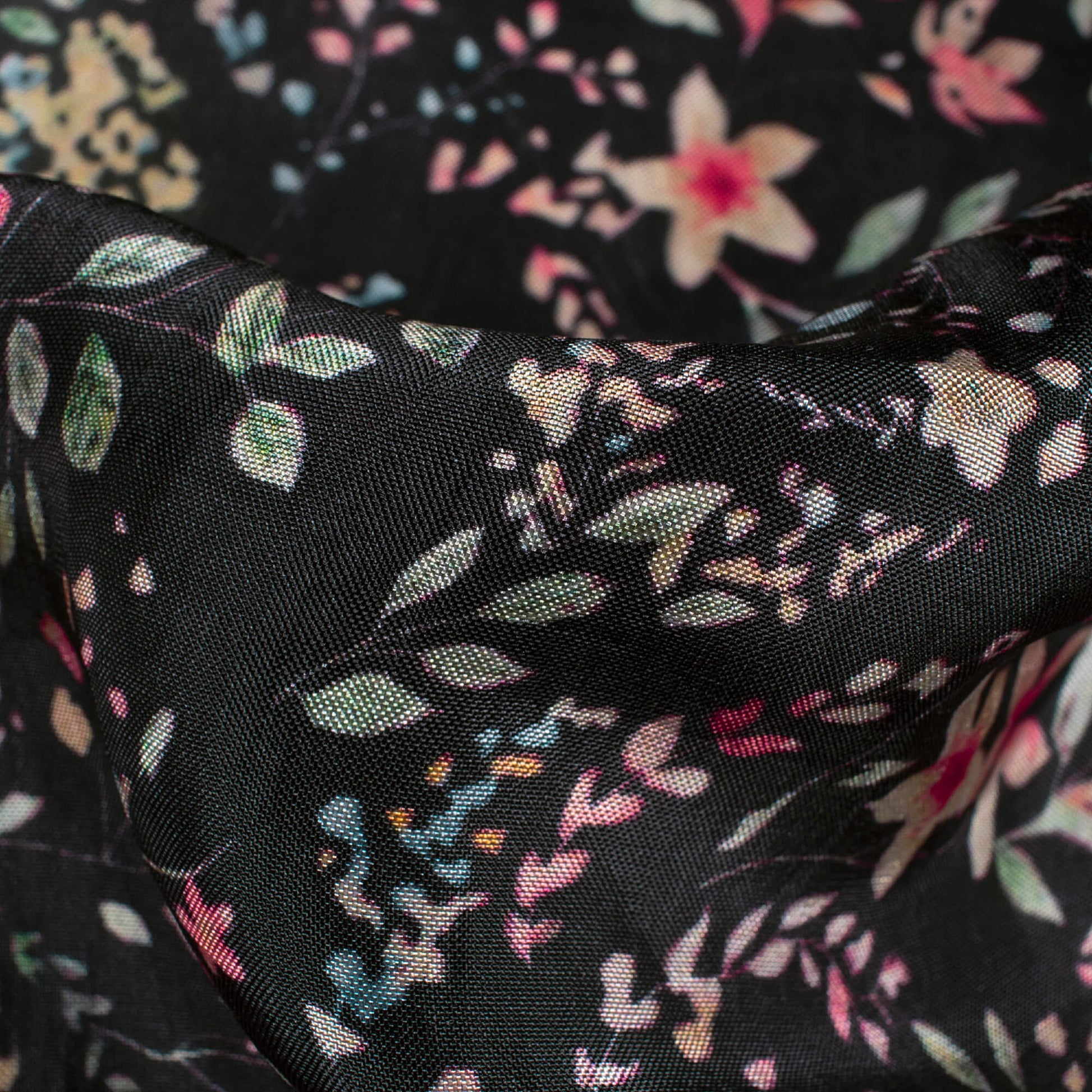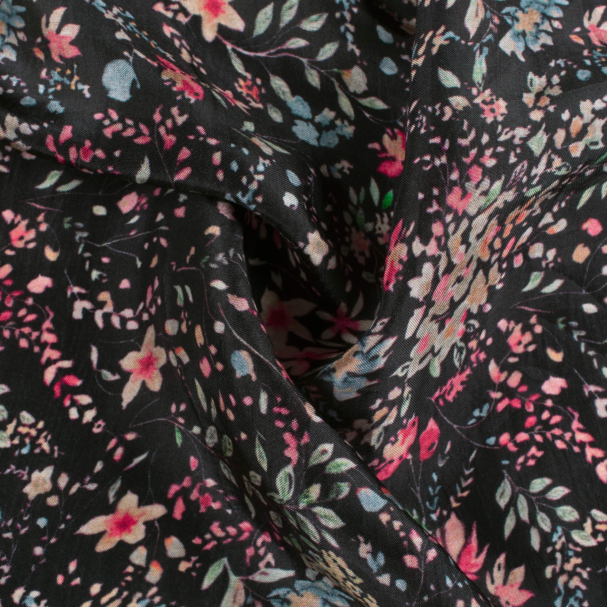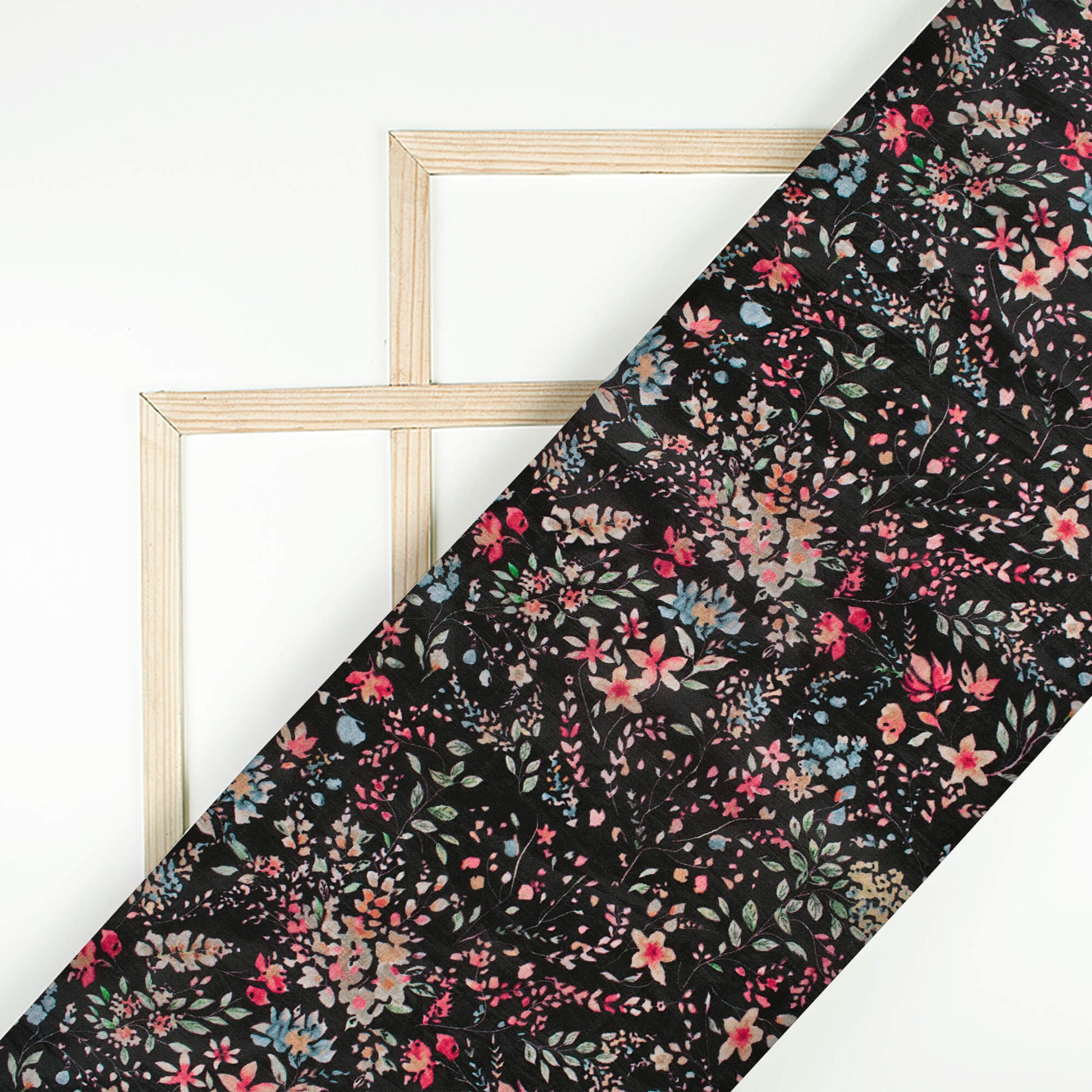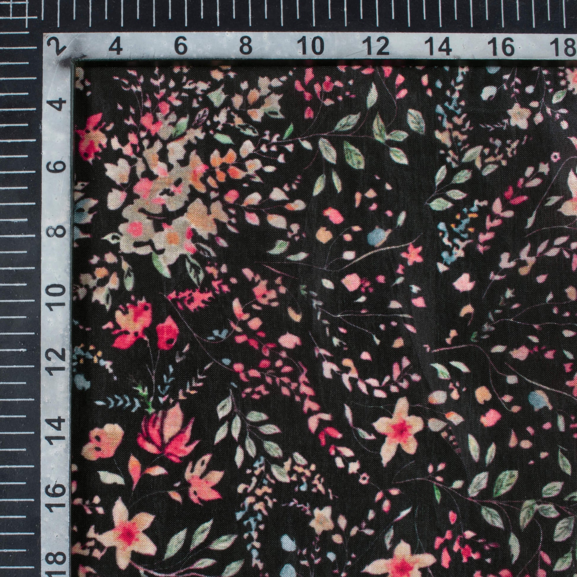 Black And Pink Floral Pattern Digital Print Viscose Uppada Silk Fabric