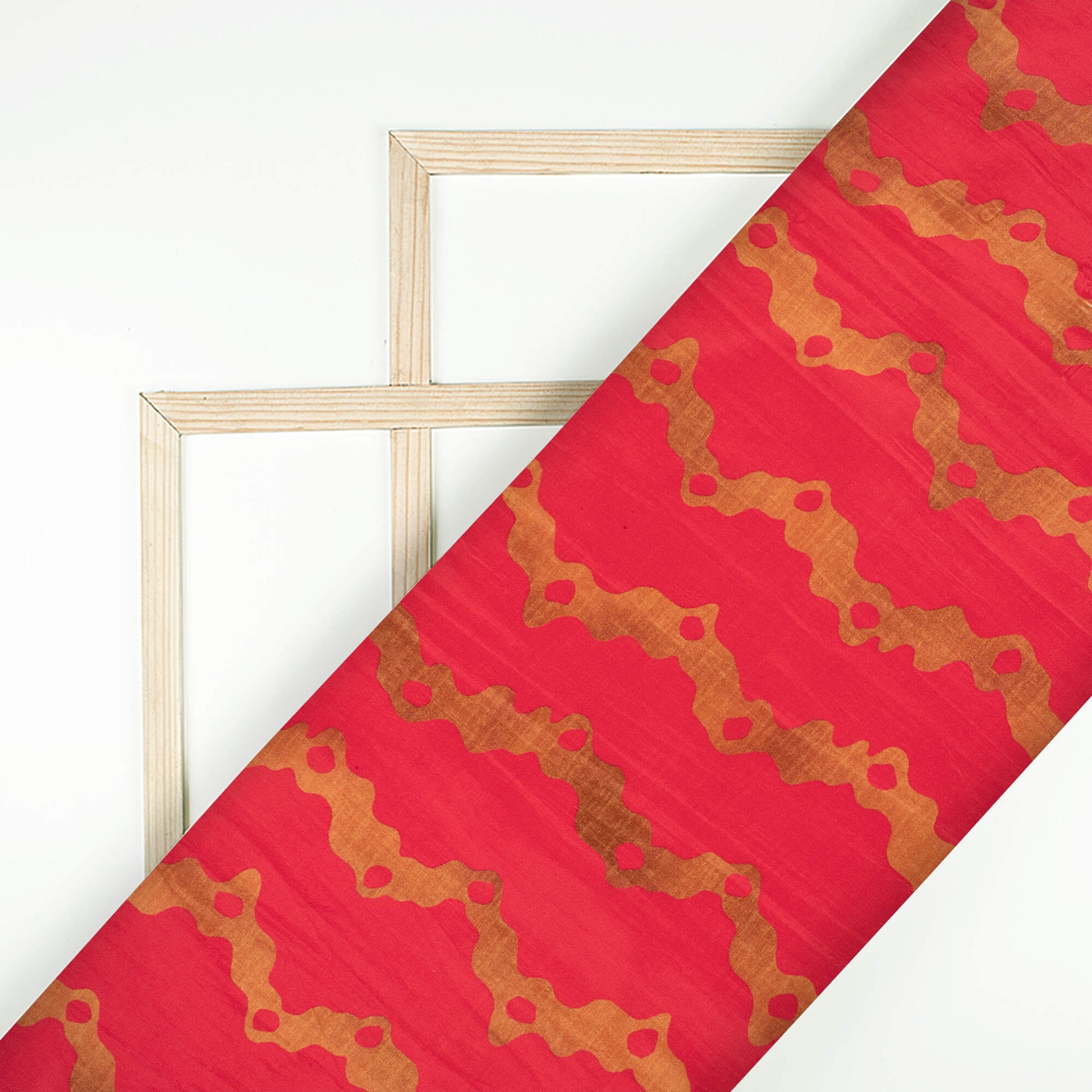 Burgundy Red And Brown Abstract Pattern Digital Print Viscose Uppada Silk Fabric