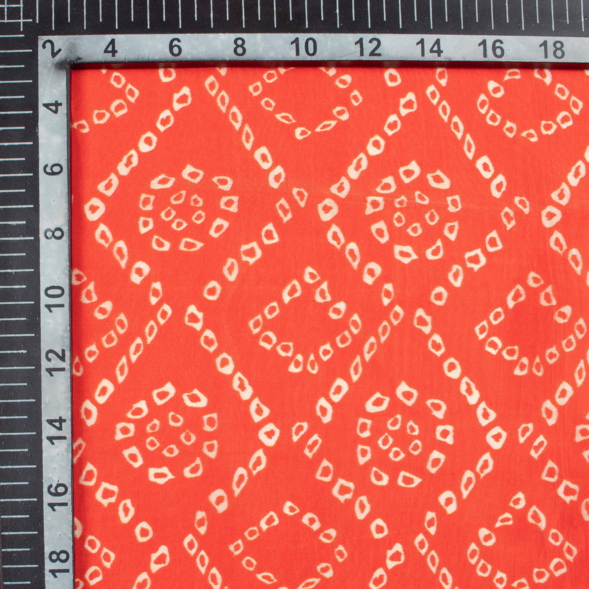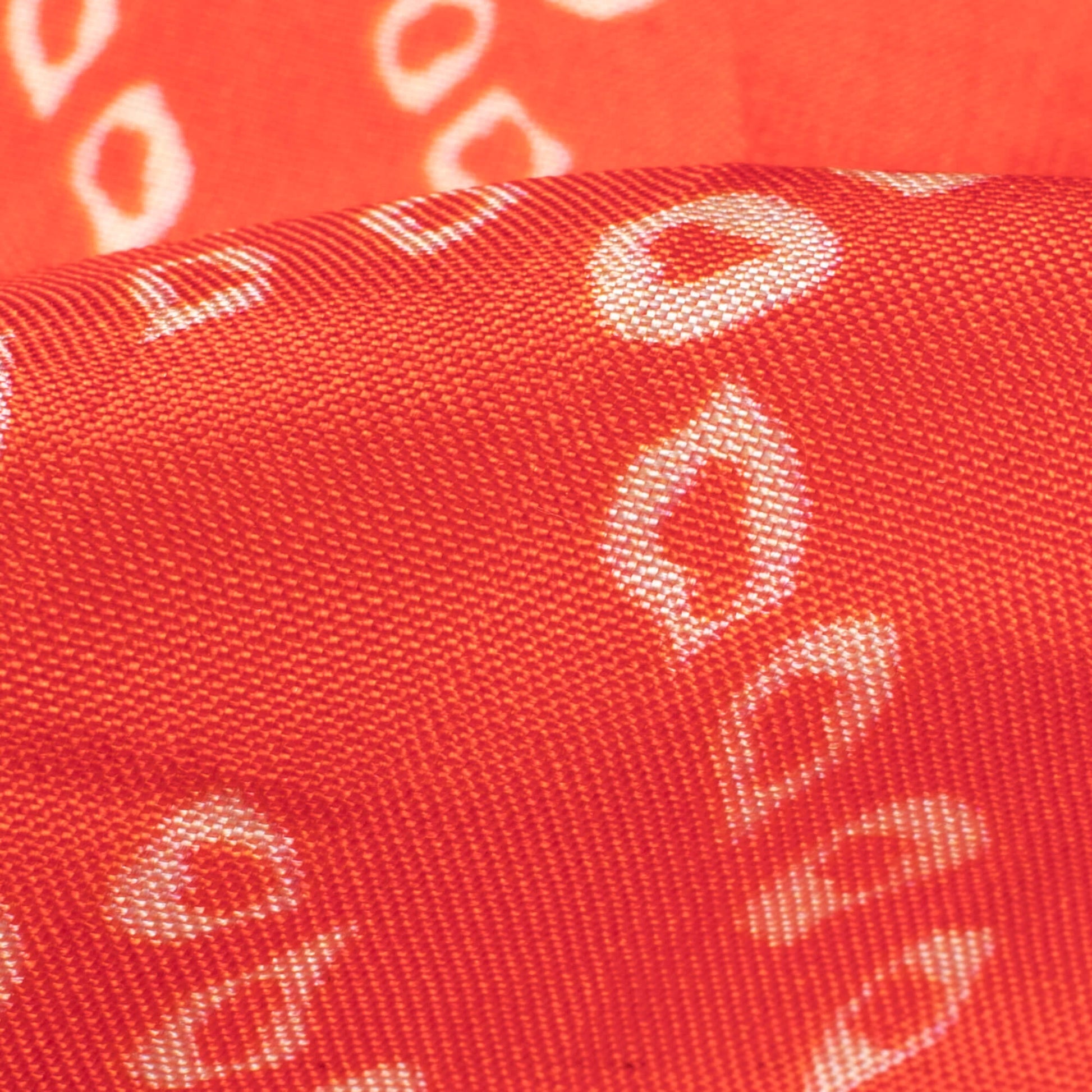 Burnt Orange And White Bandhanii Pattern Digital Print Viscose Uppada Silk Fabric